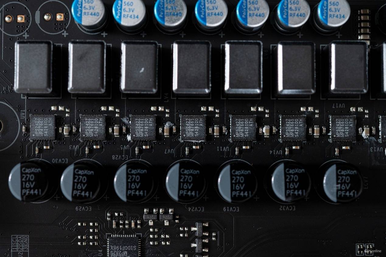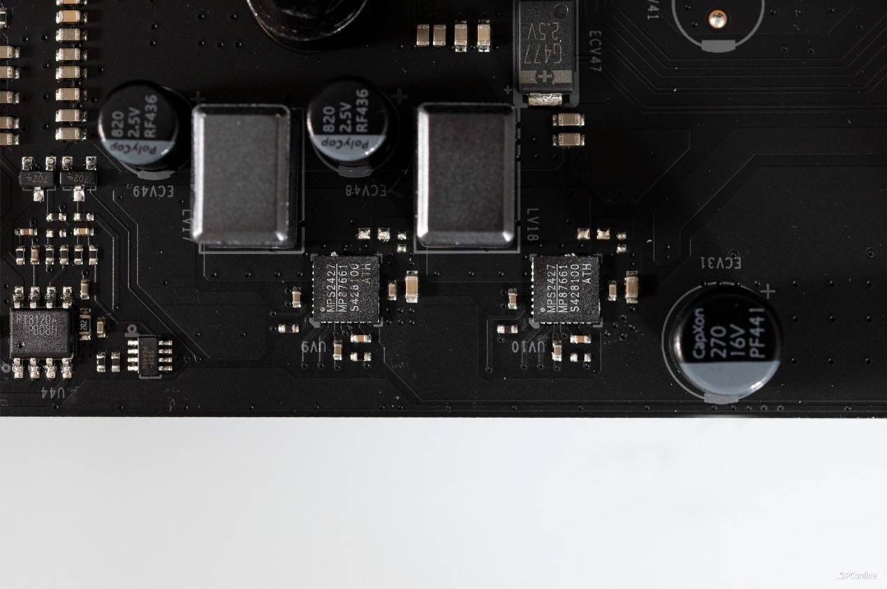 每相供电有独立的DrMos,供电芯片型号是MP87661,来自MPS,最大支持电流为60A。