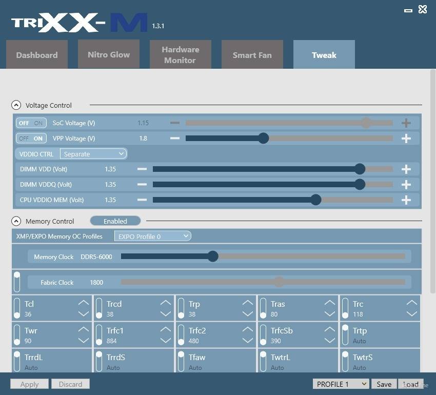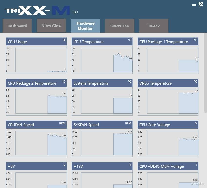 TRIXX-M软件还有更高级的玩法,以往我们调整CPU Fan或Sys Fan都需要到BIOS中调整,现在不用了,你在TRIXX-M中就可以自定义风扇的转速,操作更方便快捷。