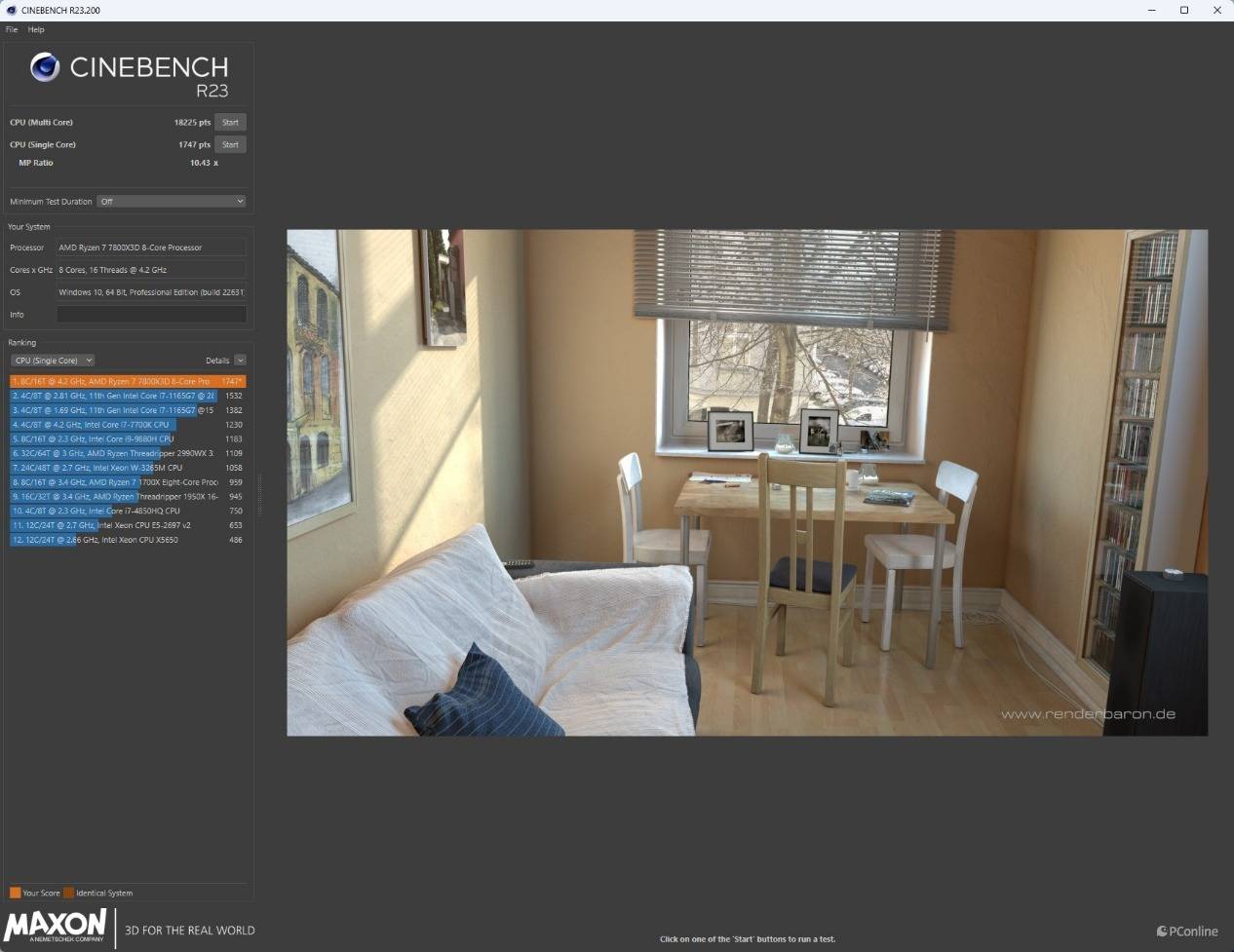 CineBench R23中,这套平台的得分则是单核1747 pts,多核18225 pts。