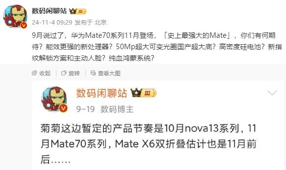 — “史上最强大的Mate”即将发布,华为Mate 70系列定档11月 —