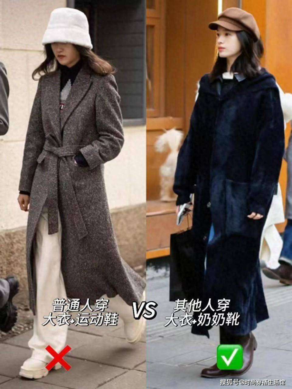 — 建议:大衣下面尽量别穿运动鞋!今年流行“奶奶靴”,洋气又显高 —