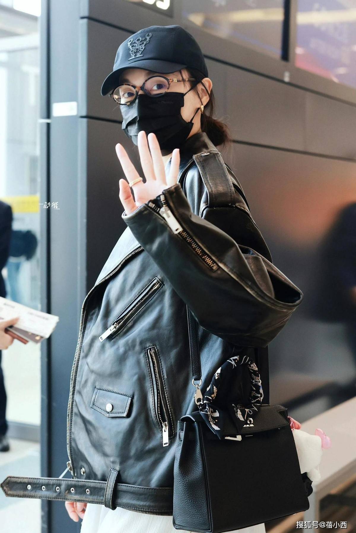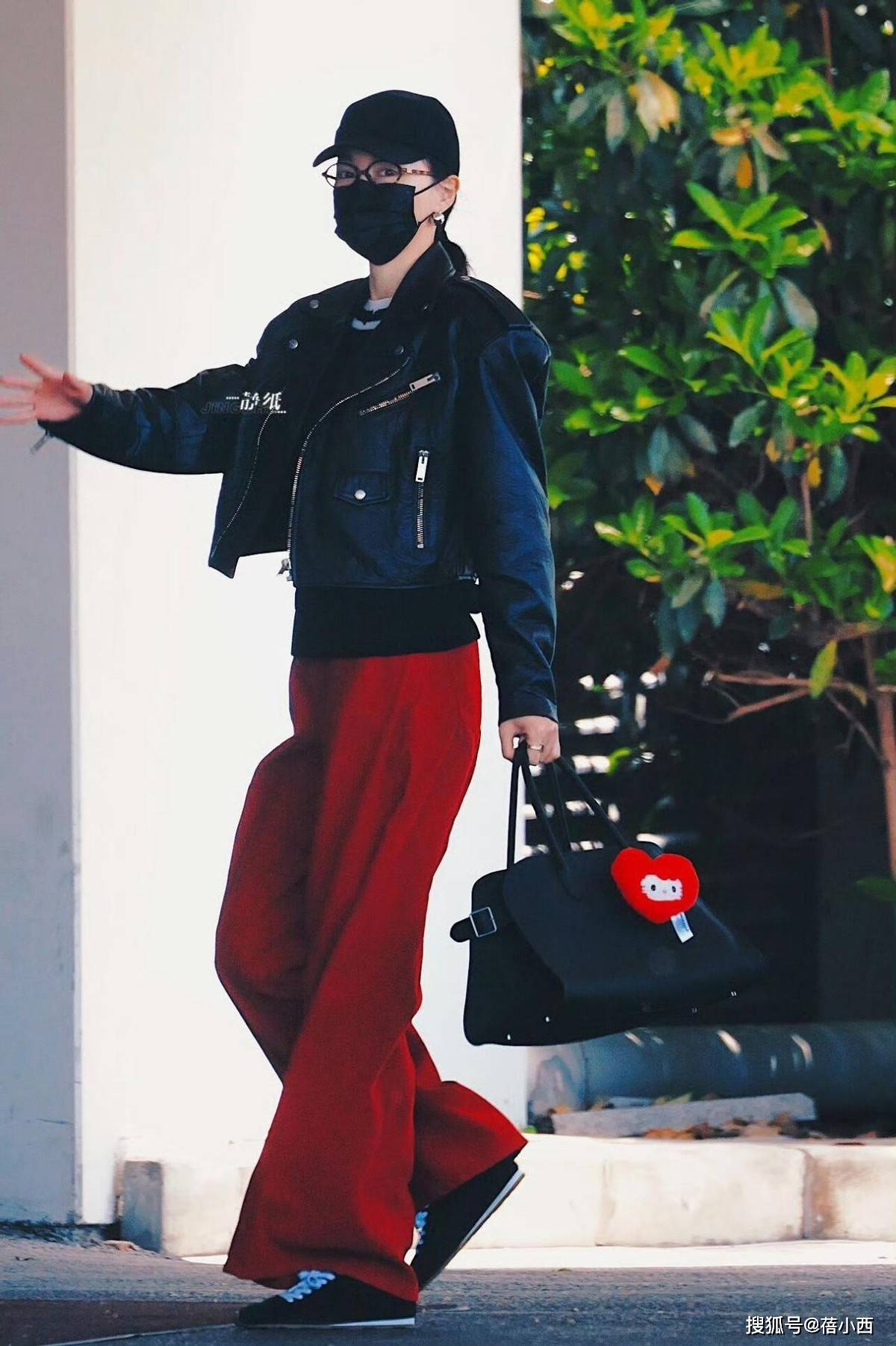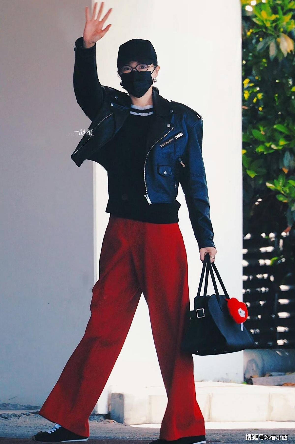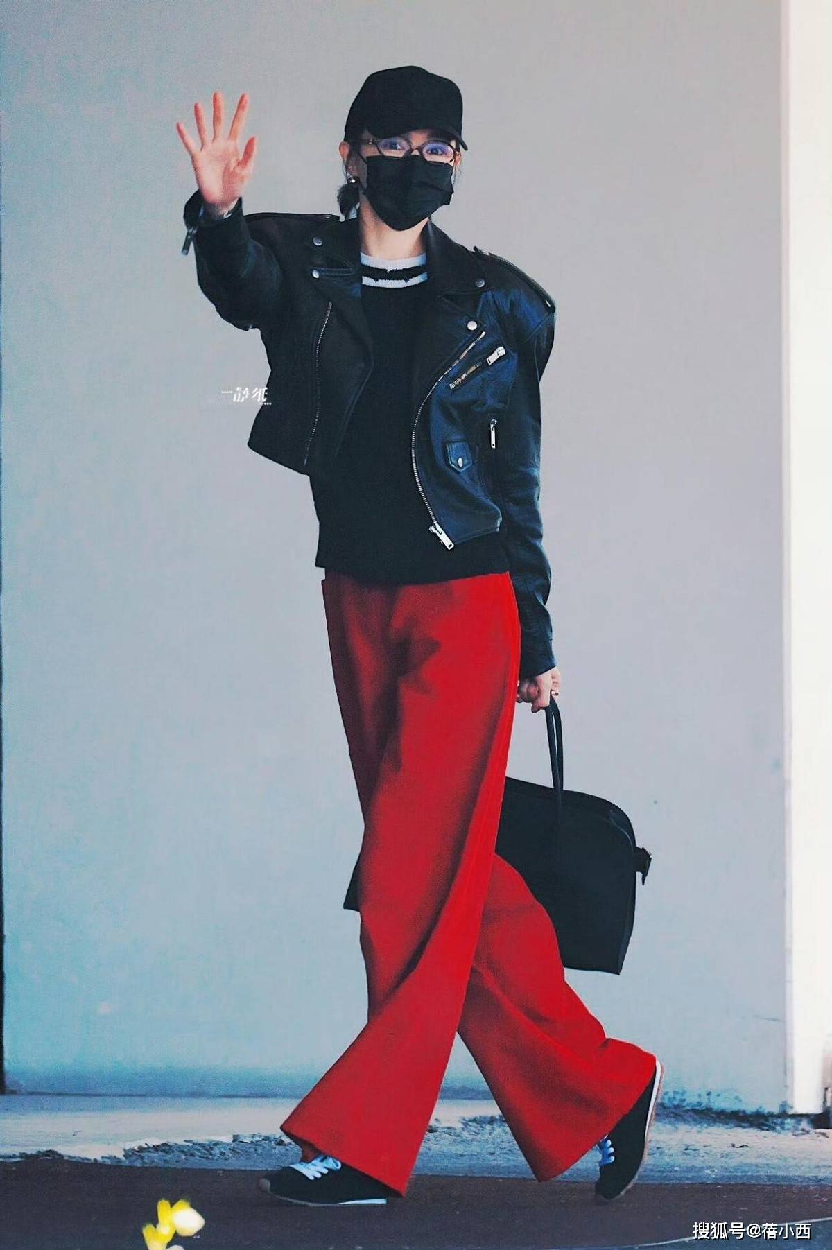 — 172唐嫣又带火了一种新穿法:黑皮衣+红裤子+运动鞋,高级又洋气 —