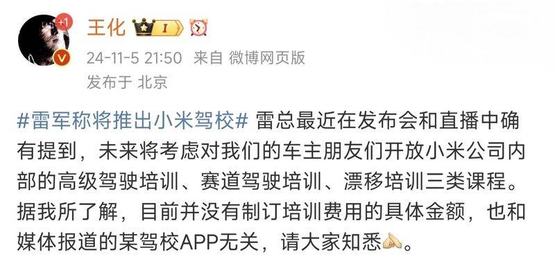 — 雷军称将推出小米驾校 王化回应1999元全包含漂移报道不实 —