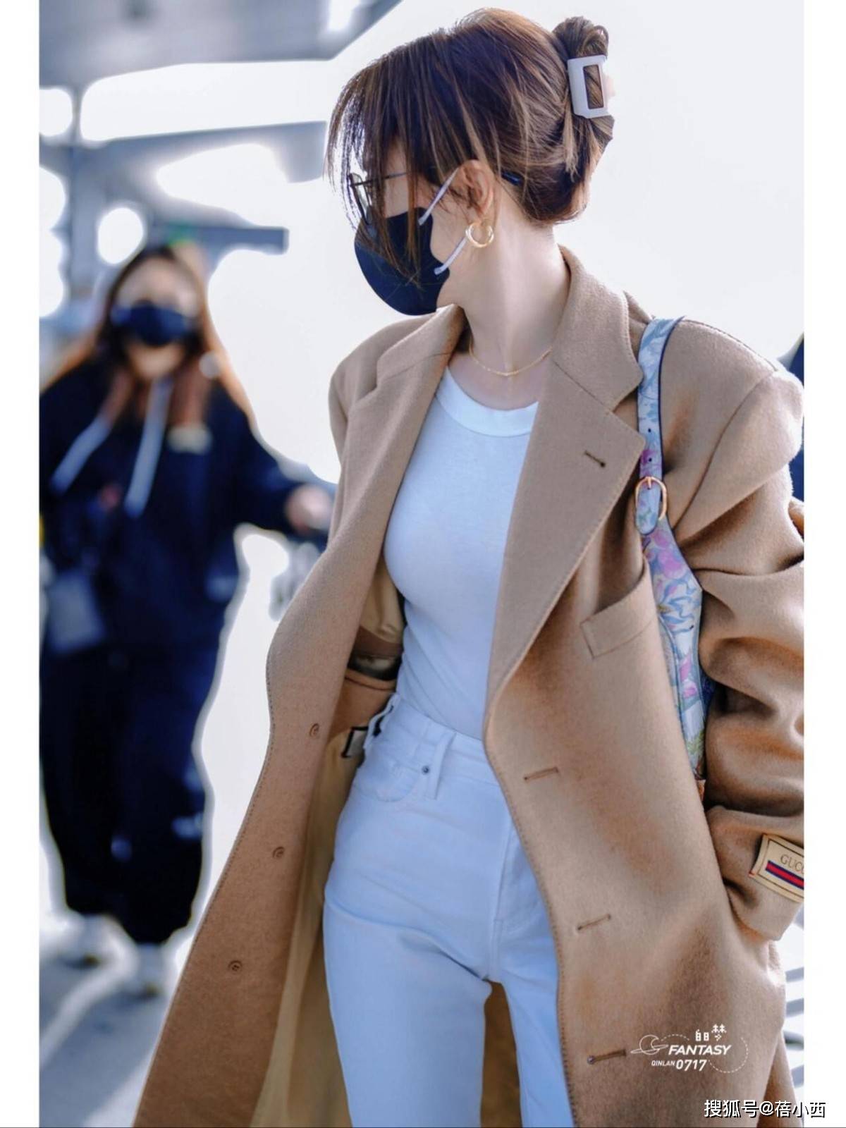 — 秦岚带火了一种减法新穿法:驼色大衣+打底衫+小白裤,高级又洋气 —