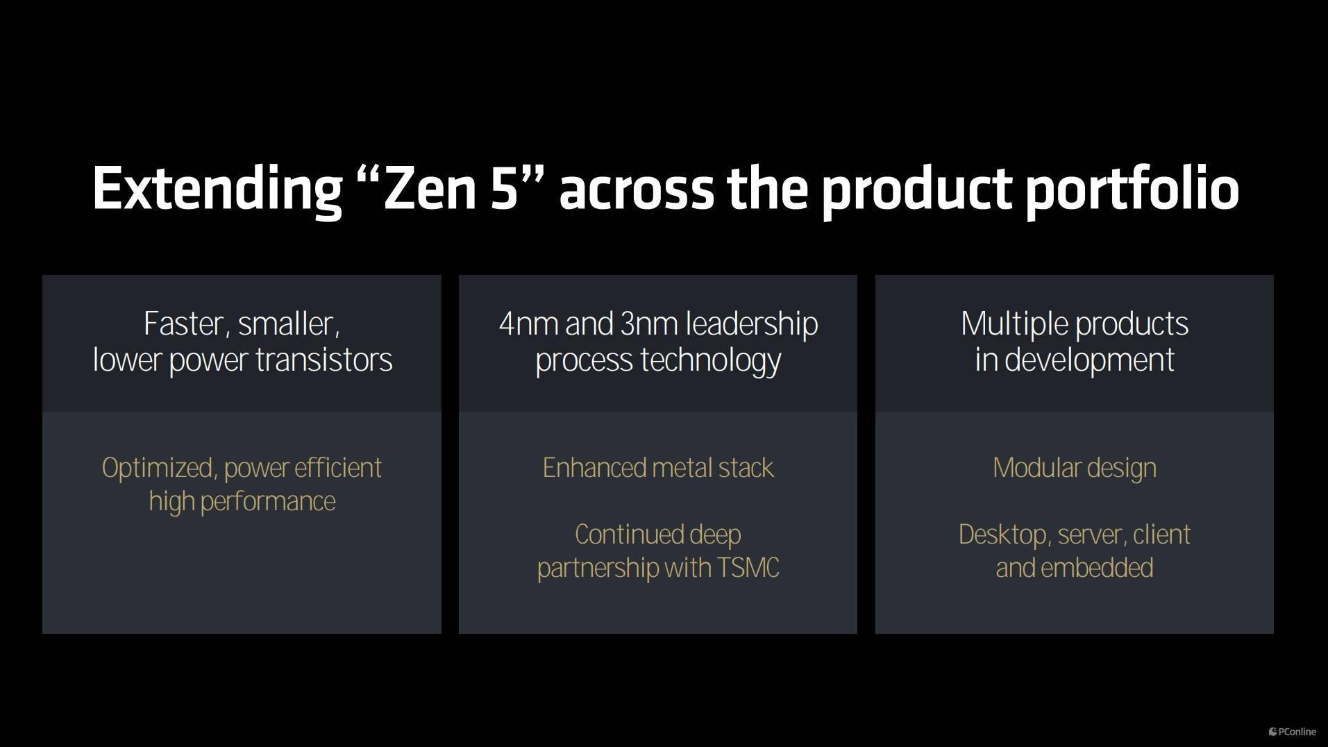 总的来说,Zen 5架构的提升主要展现在数据带宽、调度执行单元优化、更精准的分支预测以及解码缓存方面。另外,得益于Zen 5架构采用TSMC 3nm与4nm的领先工艺,因此更低的功耗但却有更高的性能,未来Zen 5架构也将应用于多个种类的产品中。