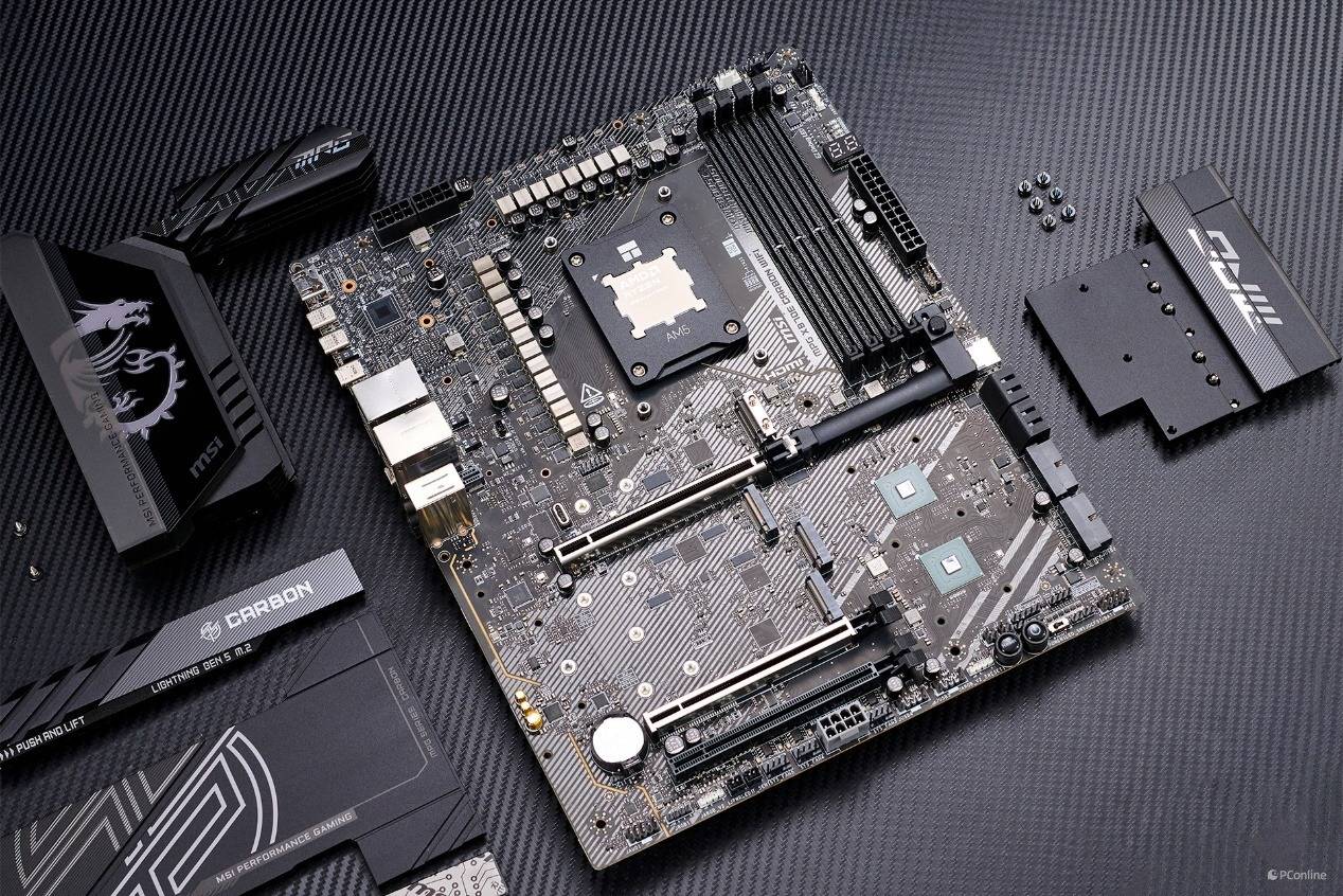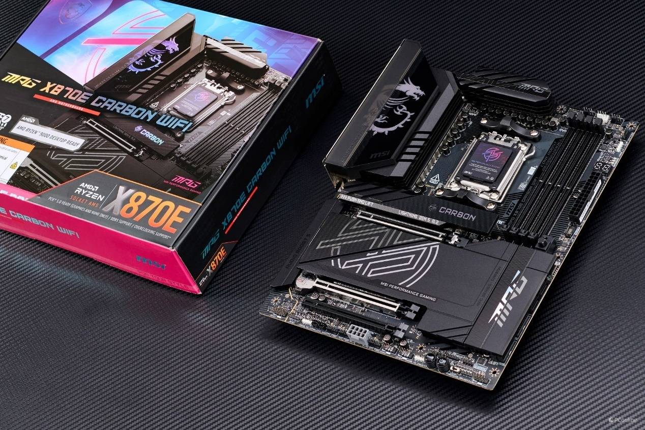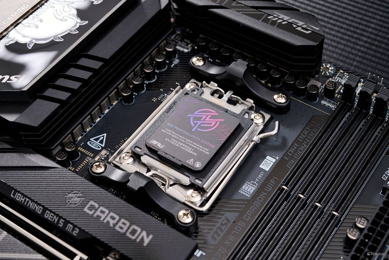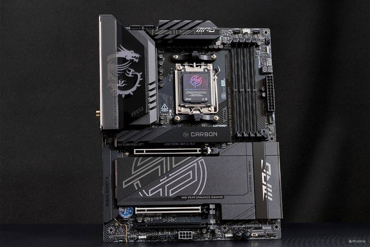 高端的CPU处理器自然也要有高性能的座驾才行,我们采用的是微星MSI MPG X870E CARBON WIFI暗黑主板,看过我们之前评测的玩家应该对这款主板不陌生,对比前代,它的升级完全可以说是超规格的,说它是小ACE都不过分。