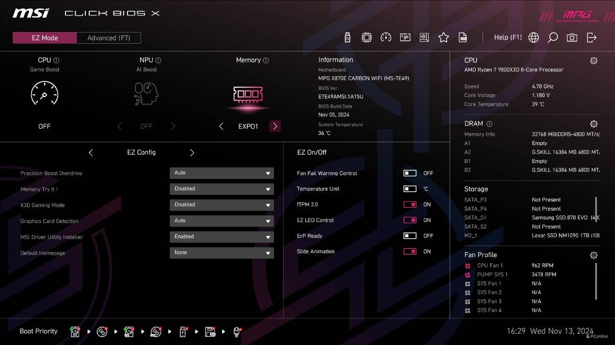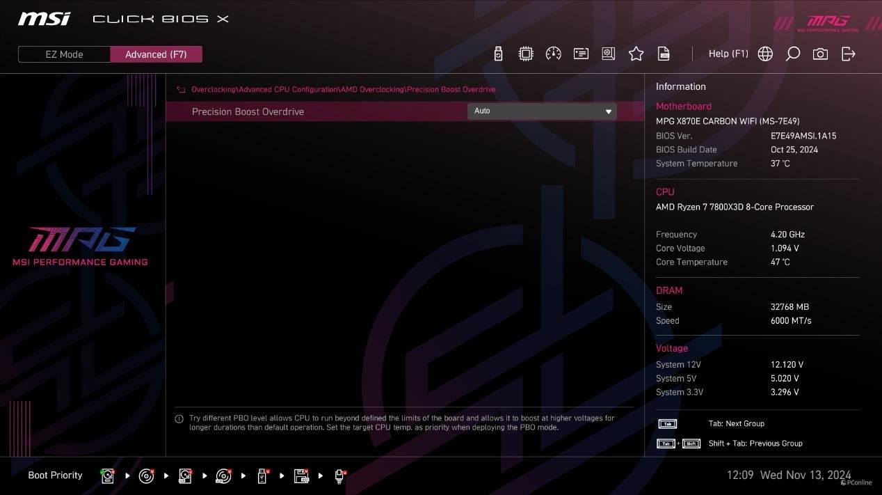 软件层面,这代微星MSI MPG X870E CARBON WIFI暗黑主板也有重大升级,最直观的就是BIOS页面全面更新,相比原本的风格,如今的设计更加有科技感,紫色与粉色混搭的设计更显年轻化,同时也增添了不少电竞气息。