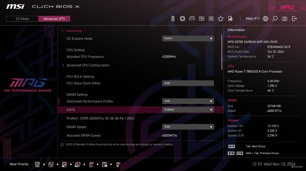 功能上,我们在下面的测试中会开启EXPO功能,内存能够自动超频至DDR5-6000 C30-38-38-96,这个频率也是AMD处理器的甜点频率。