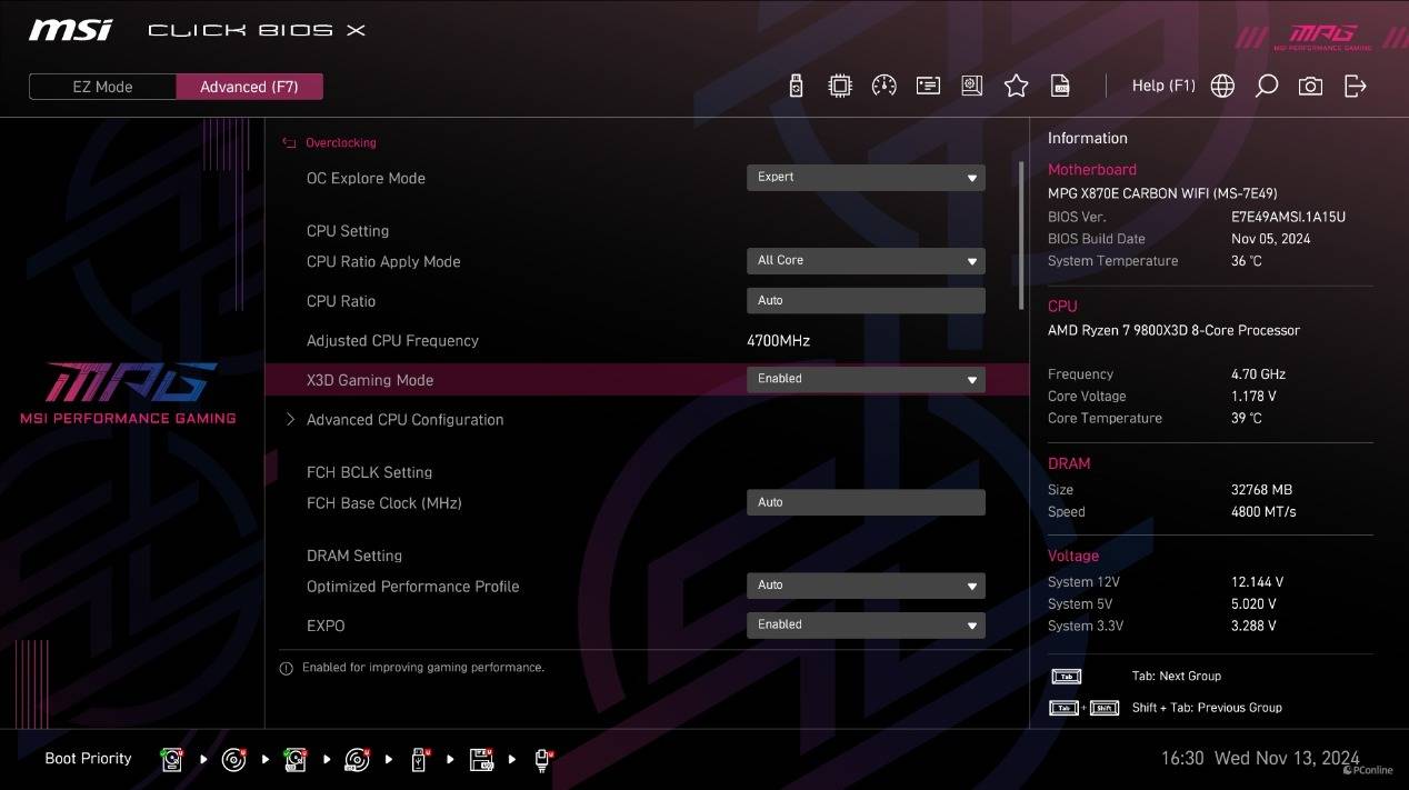 另外上面测试平台介绍部分,我们还提到了微星MSI MPG X870E CARBON WIFI暗黑主板还更新了一个X3D Gaming Mode功能,据说对X3D处理器有特殊优化,这里我们也找了几款游戏进行实测。