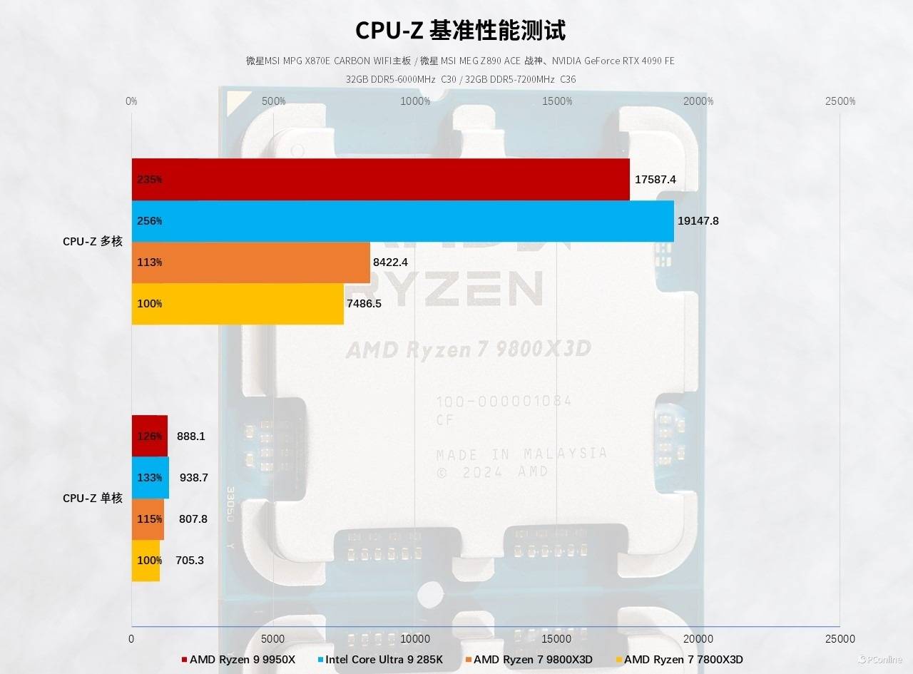 两家的处理器百花齐放,应该有不少玩家在纠结,到底入手哪一家的处理器比较好,恰好我们手里正好有酷睿Ultra 9 285K、锐龙9950X以及号称游戏神U的锐龙7800X3D与锐龙9800X3D。今天就同大家分享下,这些CPU的性能和软件测试对比,希望能为大家选择CPU时做个参考。