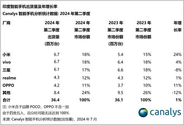 2024年第二季度印度智能手机市场销量微增 小米重....推荐人:丁丁小编 发布时间:2024-07-19 09:10:00