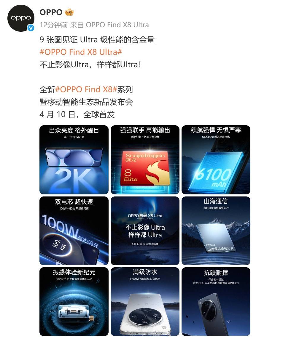 4月10日发布!OPPO Find X8 Ultr....推荐人:丁丁小编 发布时间:2025-04-08 12:50:08