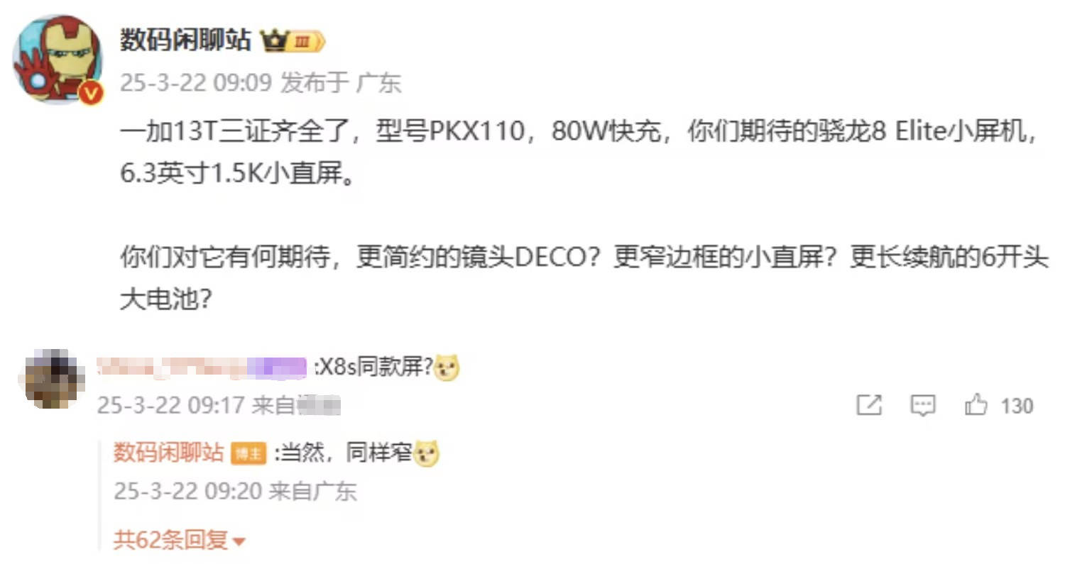 一加13T:聚焦大电池的小直屏手机,有望4月下旬发....推荐人:丁丁小编 发布时间:2025-03-26 17:35:00