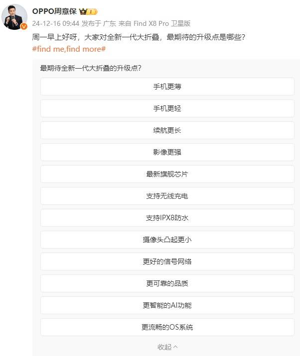 OPPO全新一代大折叠开启预热,OPPO Find....推荐人:丁丁小编 发布时间:2024-12-16 18:25:08