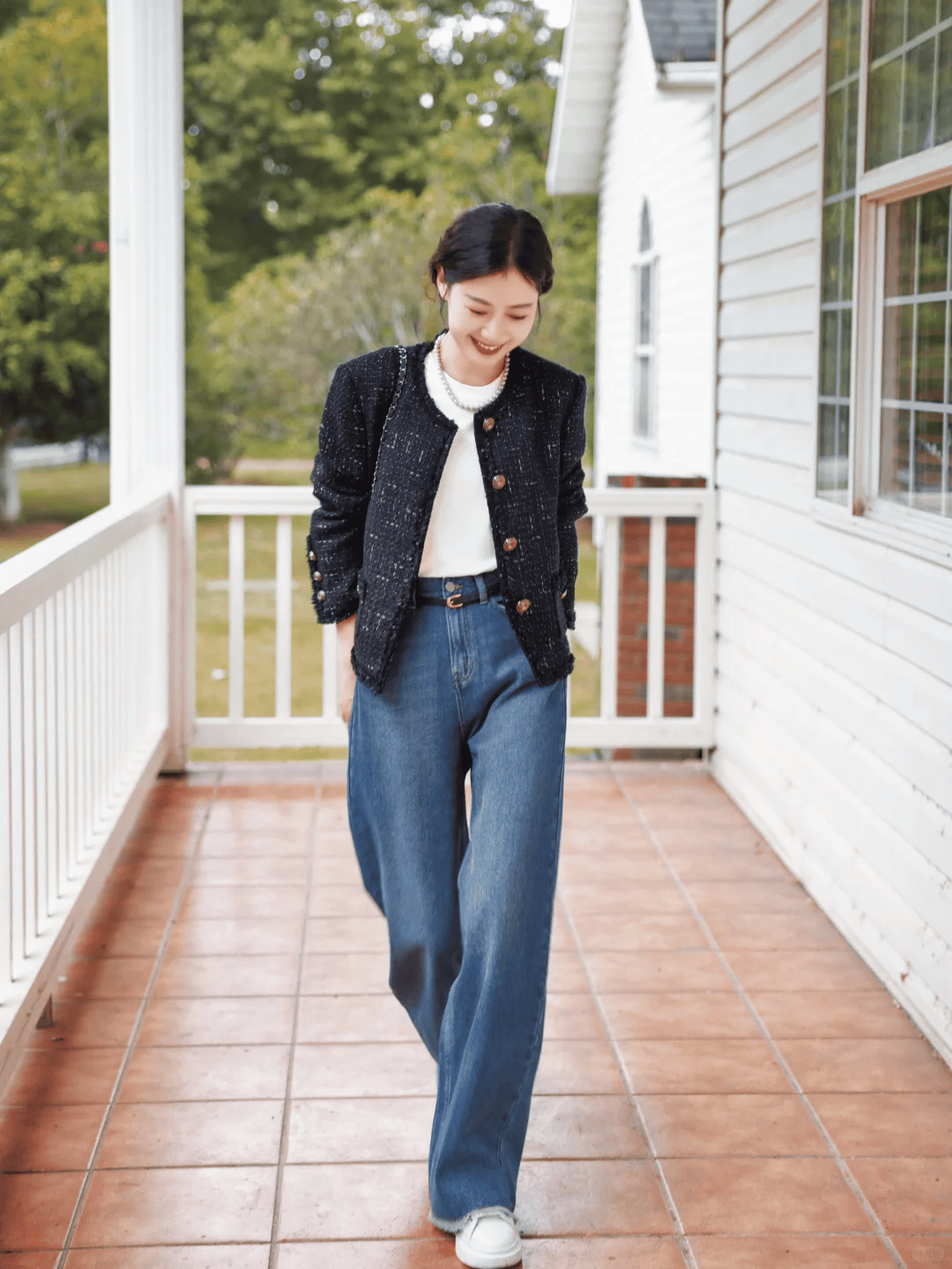 - 郭晶晶与闺蜜在豪宅里聚会!穿V领衬衫+针织衫,高级、显贵又松弛