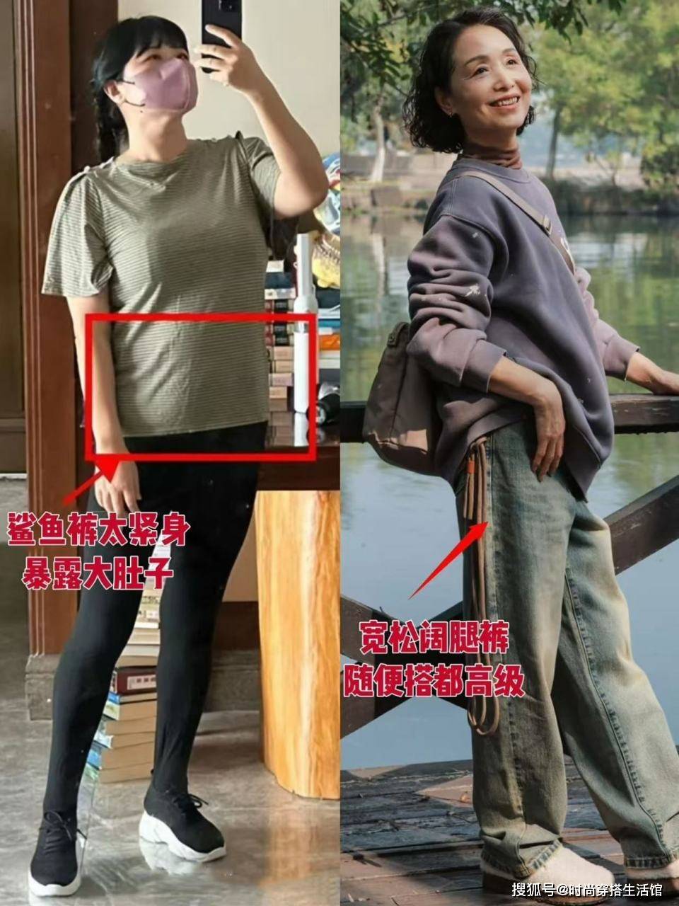 — 为什么不建议中年女人穿“鲨鱼裤”?看完这3组对比图,你就懂了 —