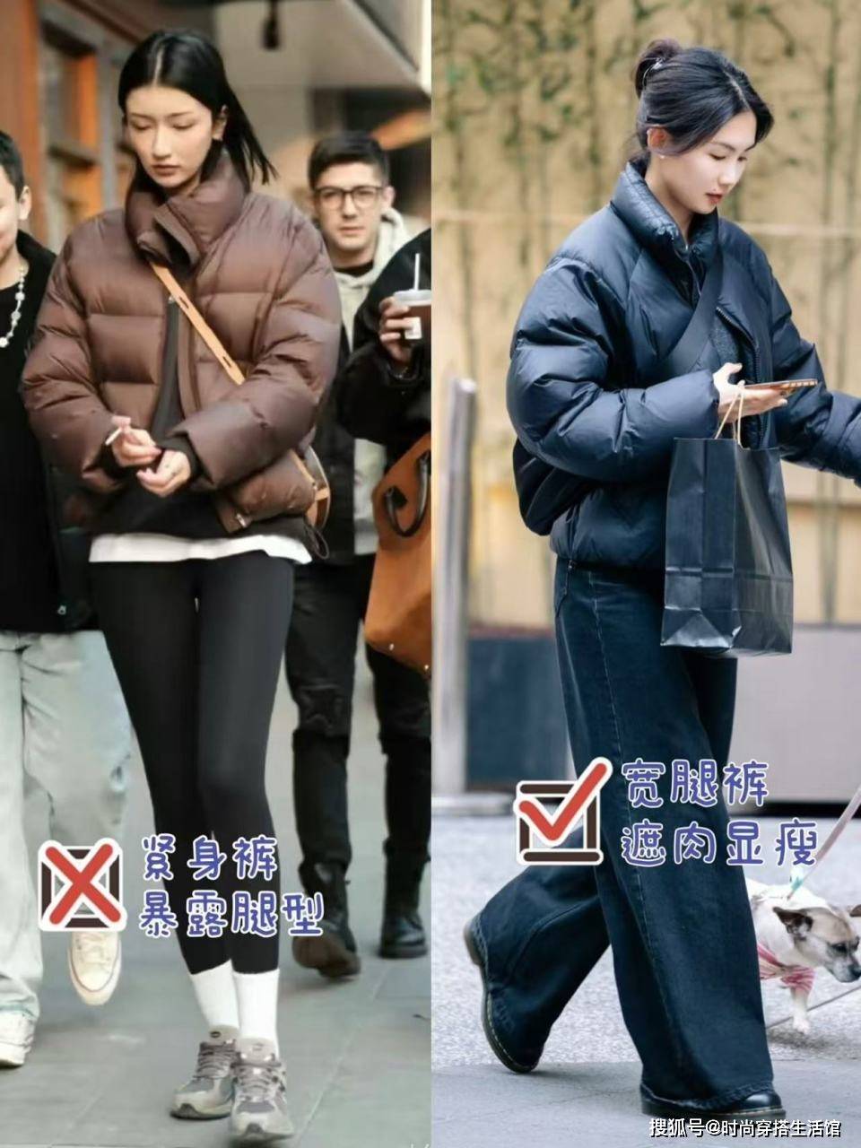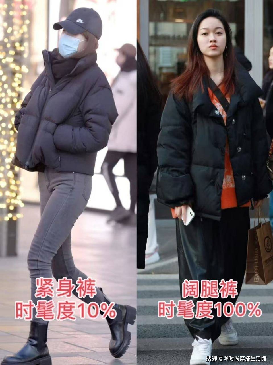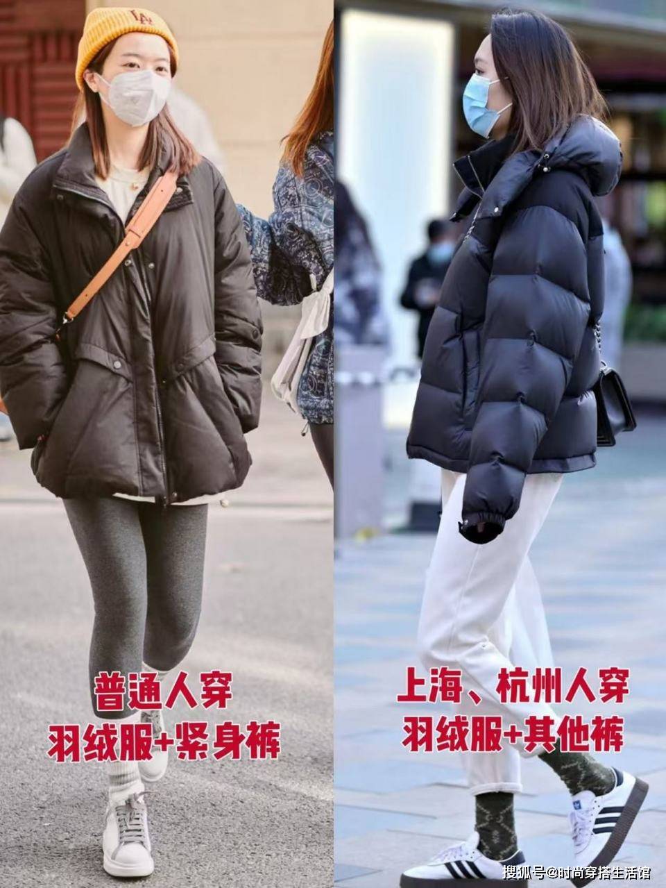 — “羽绒服”下面尽量不要搭紧身裤,瞧上海、杭州这样穿,洋气显高 —