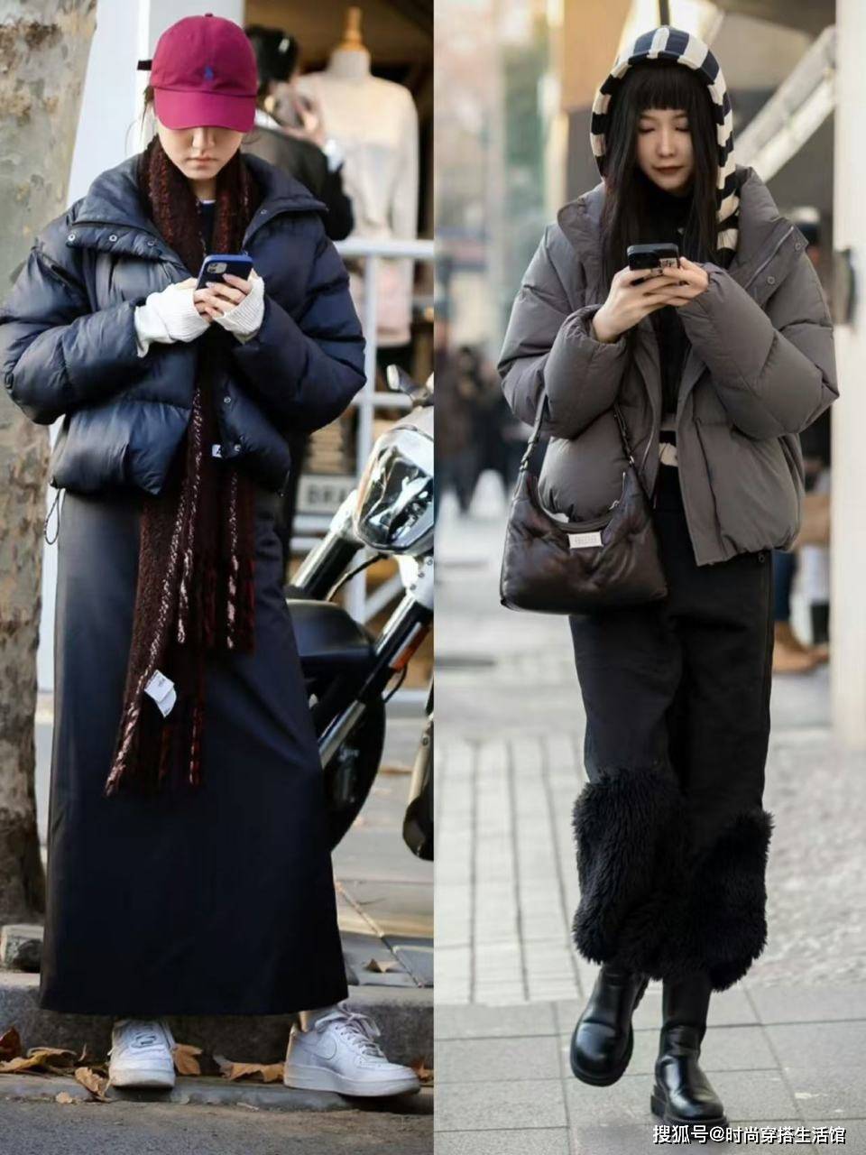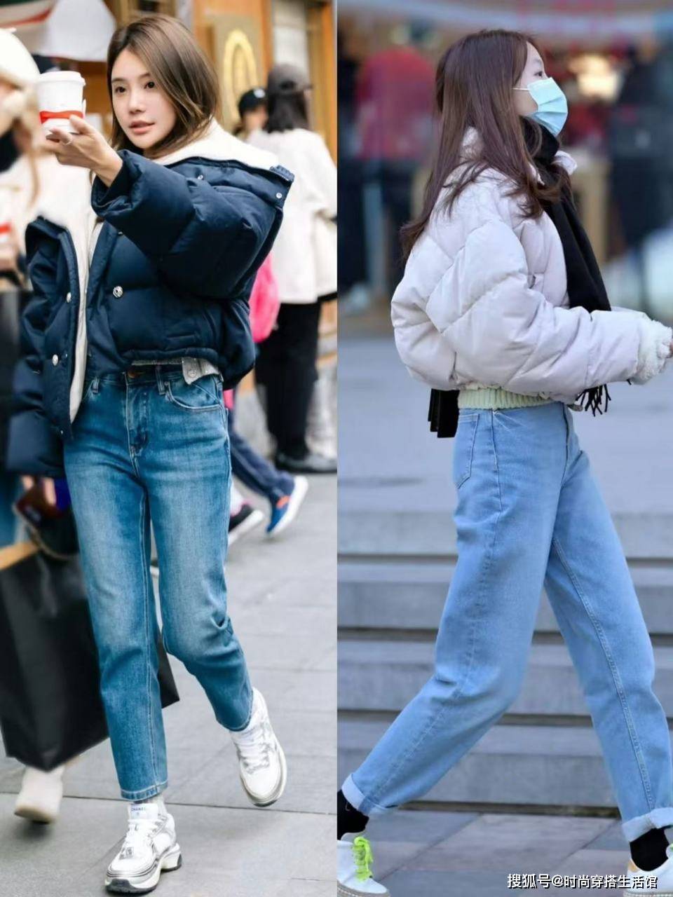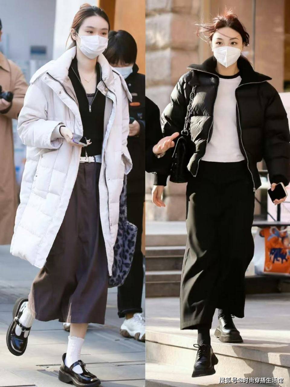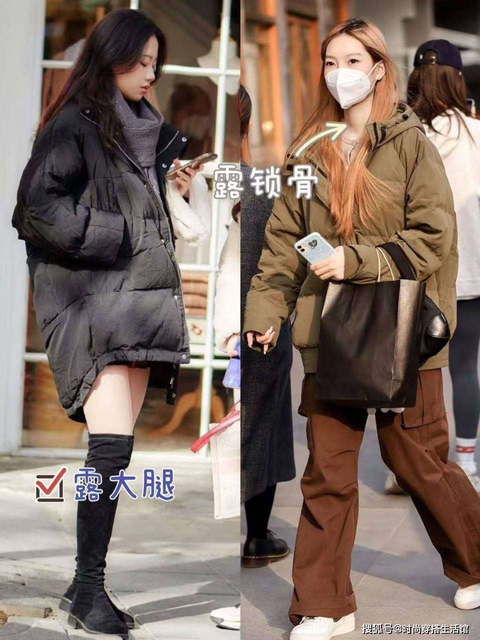 — “羽绒服”下面尽量不要搭紧身裤,瞧上海、杭州这样穿,洋气显高 —