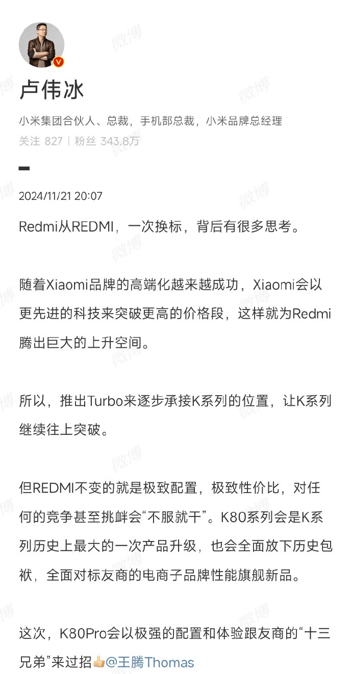 — 红米K80 Pro今日官宣搭载骁龙8至尊版处理器,堆料超级多! —