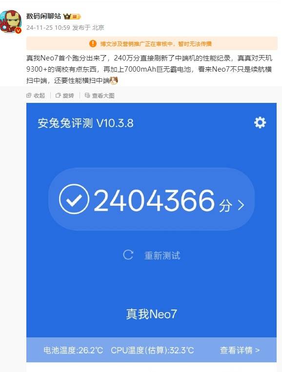 — “旗舰射门员”真我 Neo7首发7000mAh泰坦电池,发布会定档12月11日! —