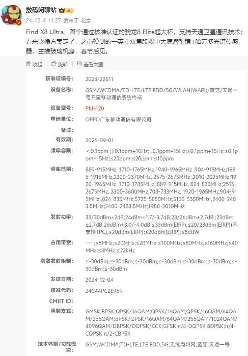 — OPPO新机入网,预计OPPO Find X8 Ultra将发布两个版本! —
