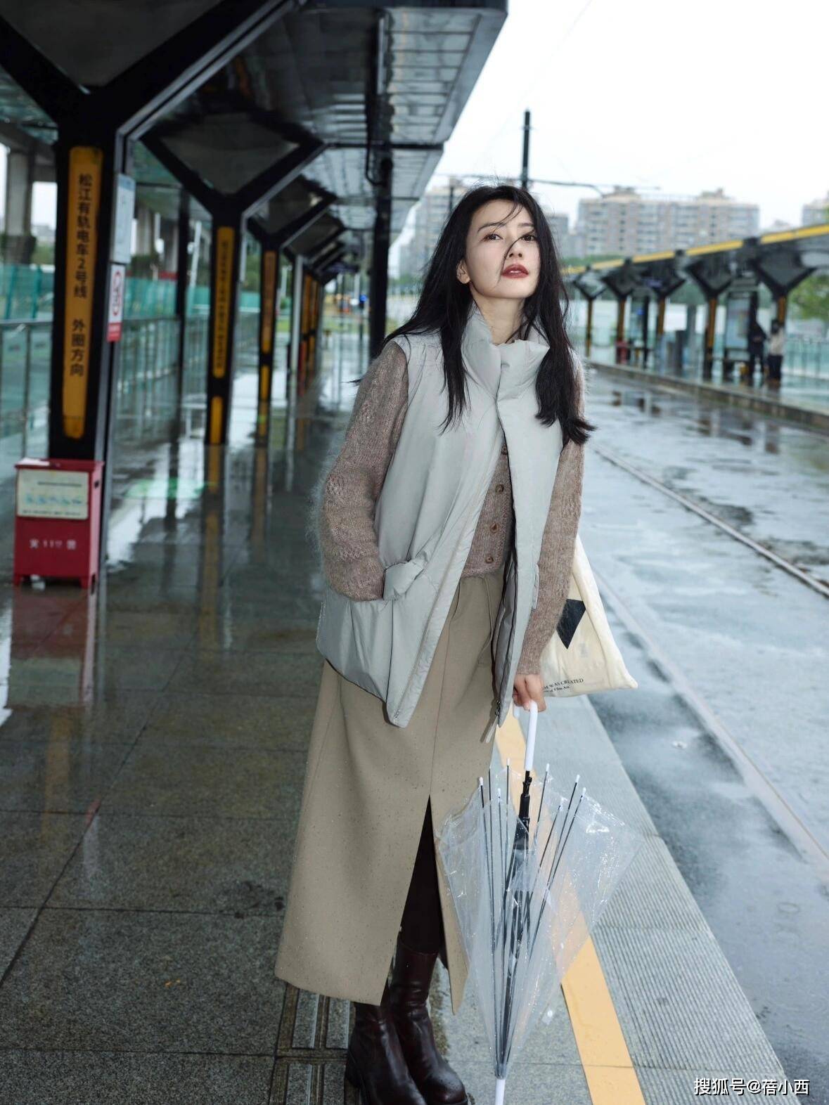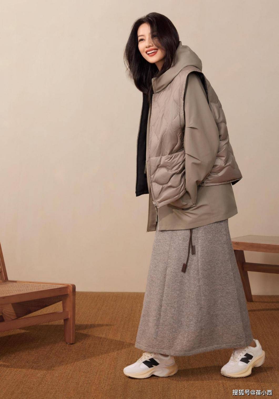 — 高圆圆带火了“巴恩风”穿搭:羽绒马甲+毛衣+半身裙,高级又洋气 —