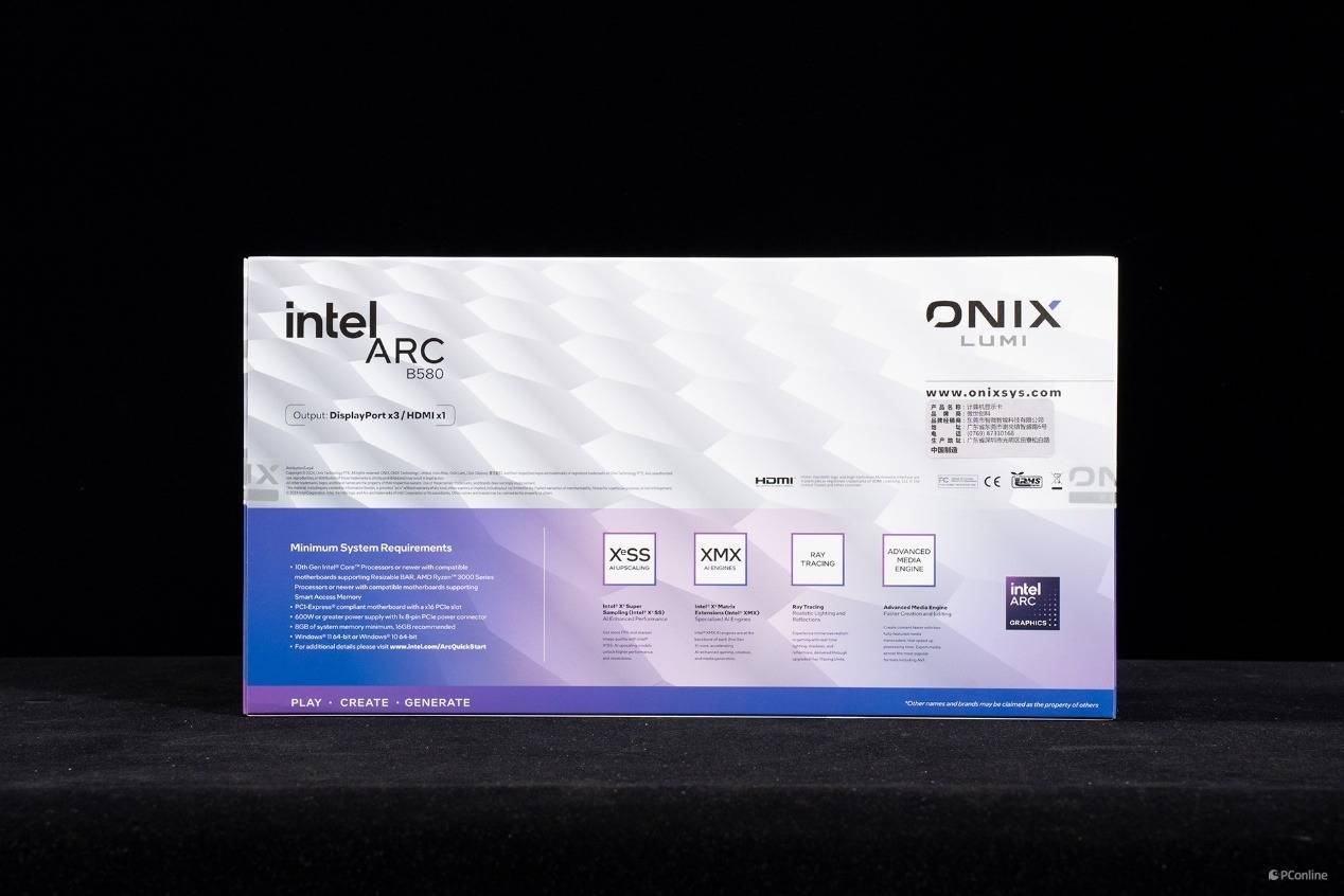 设想总是美好的,但B580显卡的真实体验到底如何,今天我们收到了来自Onix的非公版B580——傲世ONIX LUMI 追日 Arc B580 OC(以下简称为ONIX追日B580 OC),接下来就一起开箱体验一下这块显卡生力军的出品吧。