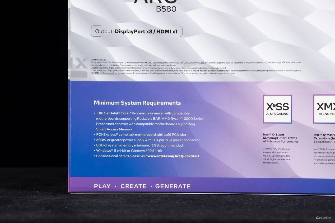如果仔细看的话会发现Onix还将B580的“最低系统配置要求”列了出来,里面提到了一个很重要的信息——需要10代酷睿以上支持Resizable Bar,或者Ryzen 3000系列以上支持SAM的处理器。