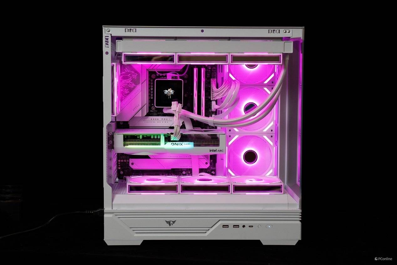 再说回ONIX追日B580 OC这个非公版本身,首先要点赞做工,做工和设计语言的处理成熟得不像一个“新势力”品牌。在保证外观颜值和做工规整的同时,它还有不错的散热能力,双风扇的尺寸对多数机箱有良好的兼容性,加之相对少见的全白配色以及首批带ARGB的B580双重特征在颜值方面有先天优势。能把做工、设计、用料、实用性三者做到合理均衡,ONIX的产品团队颇具大厂作风。