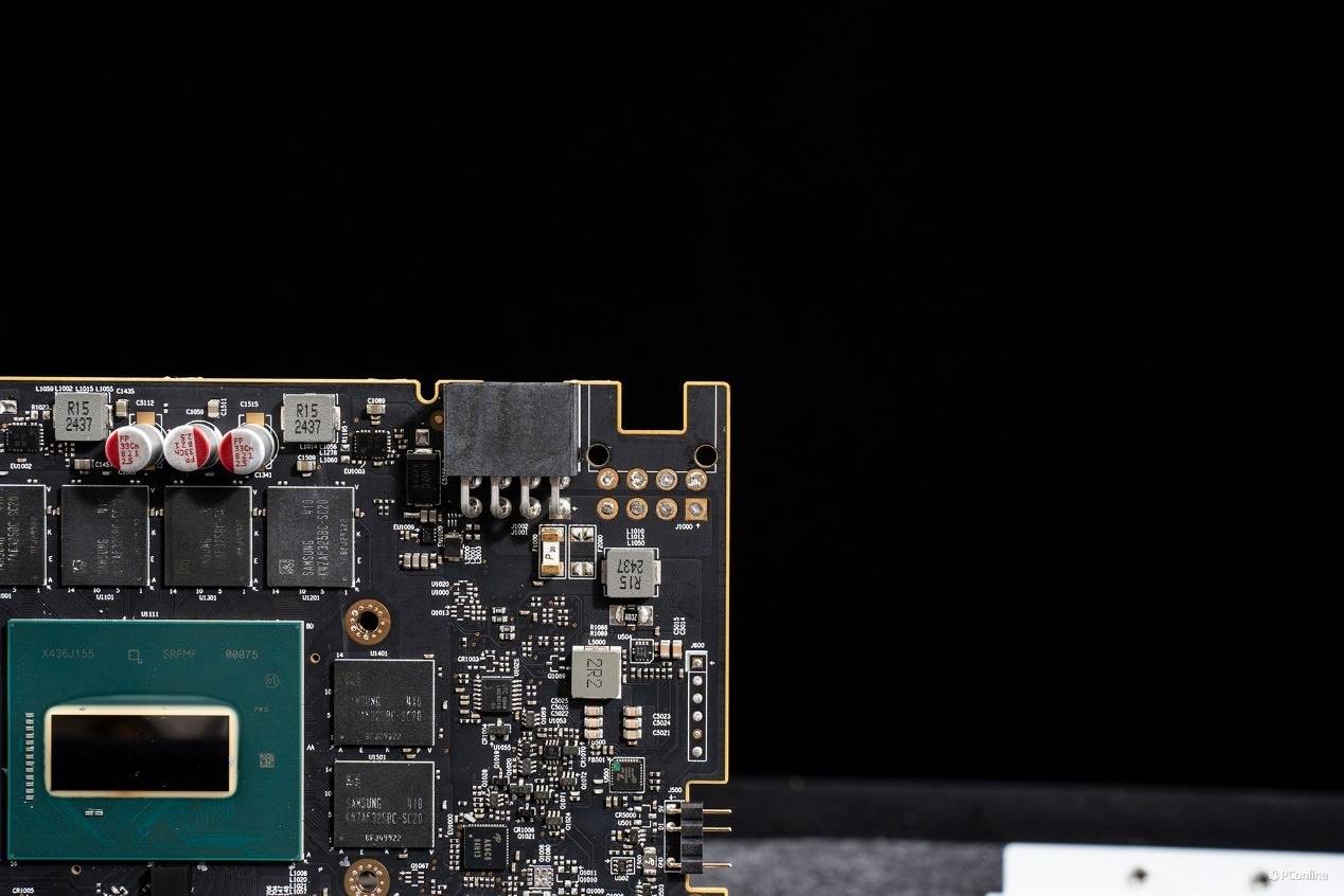 供电接口的设计比较有趣,这张卡采用了8Pin供电接口,但是PCB内部还预留了一个8Pin接口的焊盘位置。