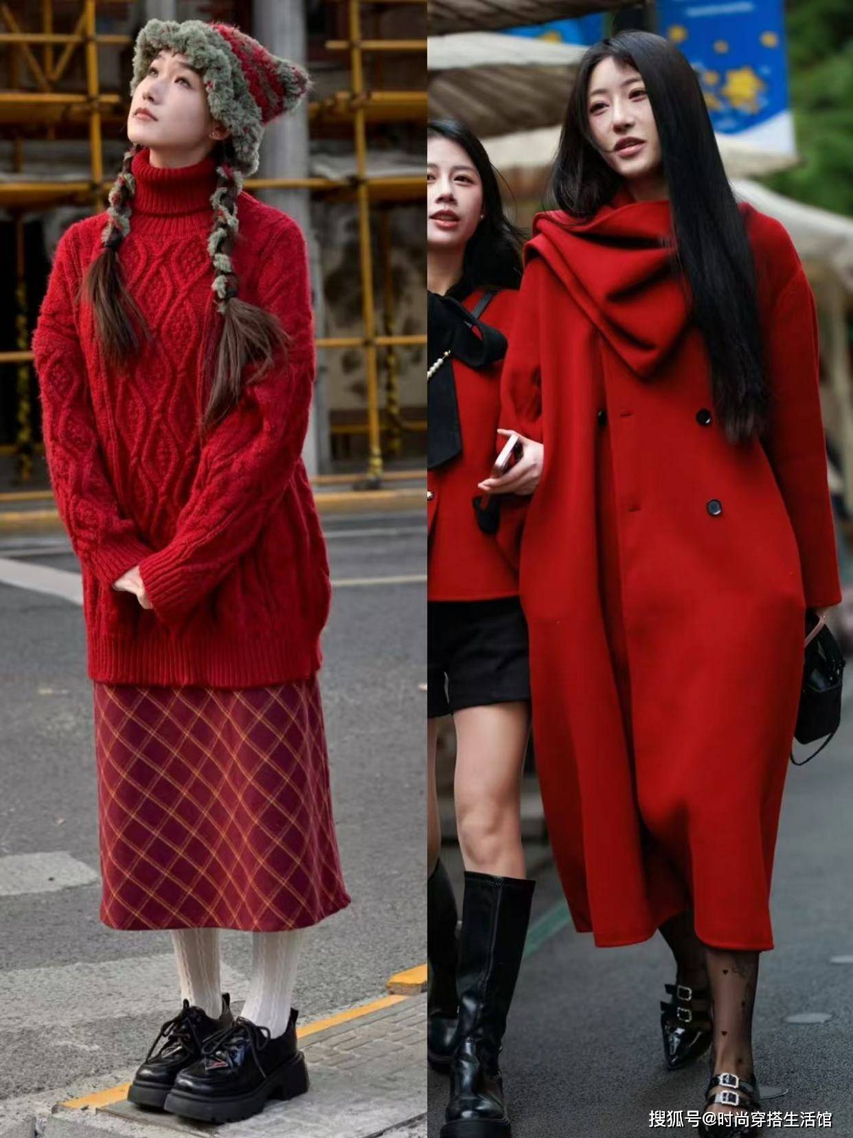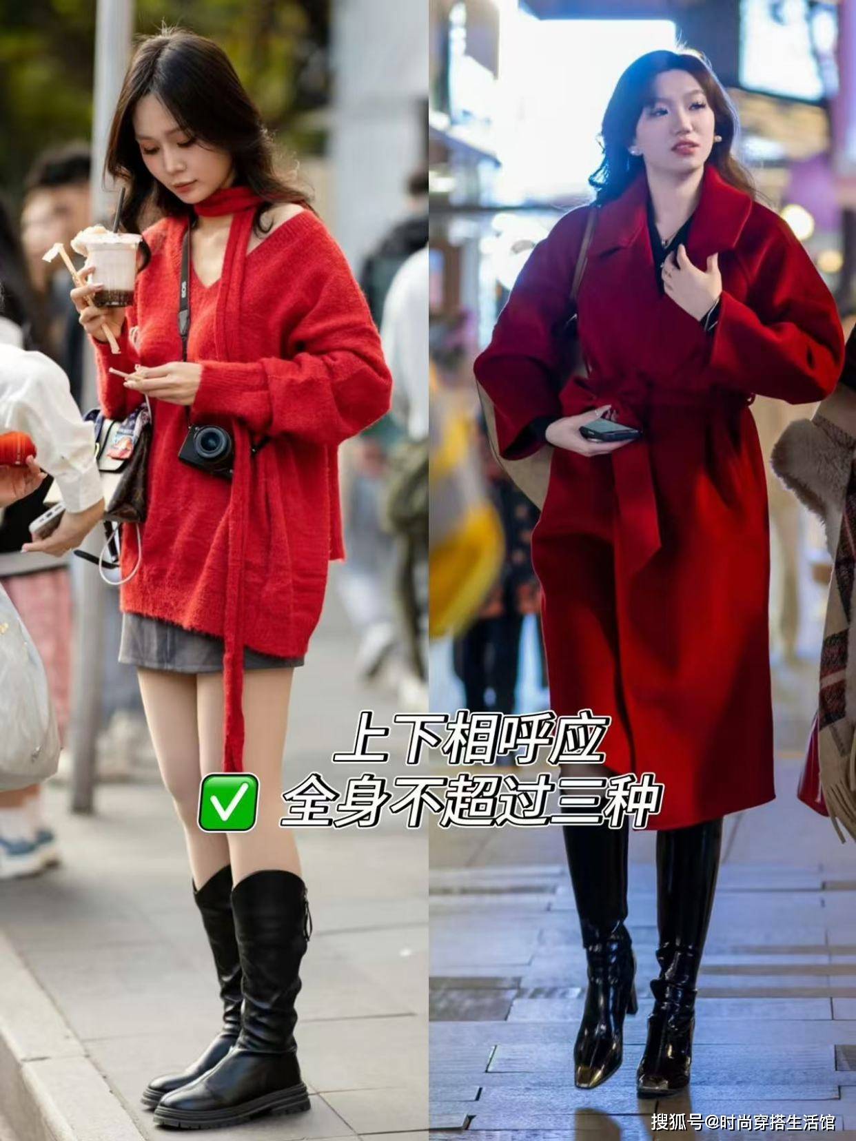 — 降温后去上海才发现:满大街都是“一身红”打扮,洋气喜庆又高级 —