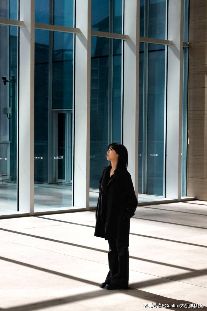 巨型落地窗一定是每个展览馆的“标配装饰”,冬日午后的阳光纯净度非常高,这里并没有选择“特写人像”,而是发挥移步换景的拍摄思维,请“他/她“沐浴在光中,并有意识的站立于“十字型”的建筑倒影中,轻微抬头享受阳光。让暖阳打亮面部轮廓,在侧逆光的情况下直接拍摄。当然,这里的后期修图其实也可以有多重思路,既可以主动拉爆“亮度”,让人物突出,也可以提升背景的“对比度”,用深邃空间去衬托前景人物。但在这里我们犯了一个失误,因为开启了“所见即所得”,且设置为“电子前帘快门”,使用光圈优先拍摄时,导致快门速度超过1/2000秒后,无法以机身测算的速度进行工作,出现过曝现象。不过尼康Z50Ⅱ的静态图片宽容度极好,能非常轻松将过曝图片拉回。如果你也出现了类似的情况,可以打开机身菜单的自定义设定菜单大类,选择“d拍摄/显示”中的“d6快门类型“调整为电子快门或机械快门。