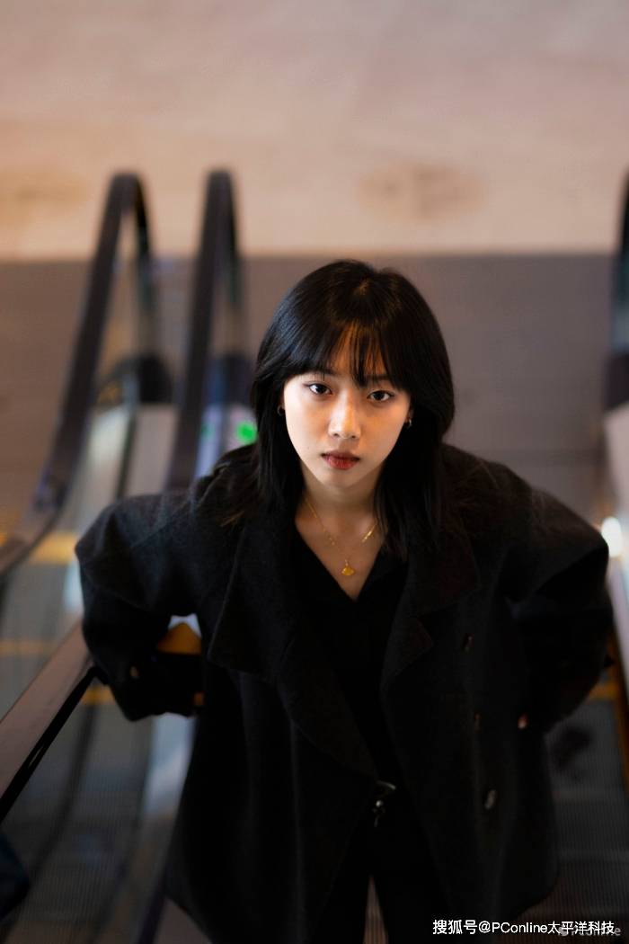 本次人像体验评测第一站选在城市city walk中必不可少的“各类展览馆”。相较一般室内场景,这里精心设计的光线、浓郁的艺术氛围可以轻松出片的同时,还能帮助你驱散疲惫工作带来疲惫“班味”。怎么在展馆拍摄?当然不能错过最简单且基础的“电动扶手梯”,准备拍摄前,需要注意“后续可能一起乘坐扶梯的人群”,注意规避不必要的拍摄影像并“预设”光线照射的方向,可以请“他/她”四处张望并寻找镜头,这里我们建议使用快于1/200秒快门速度,配合最大光圈并开启相机低速连拍来捕捉“动态的影像”,可以有效突出人物并缓解“他/她”的尴尬局促感。这里我们有效利用了尼克尔 Z 50mm f/1.4的中长焦压缩能力,利用“居中构图”和“扶梯引导线”将视觉中心自然而然的聚焦于人物上。