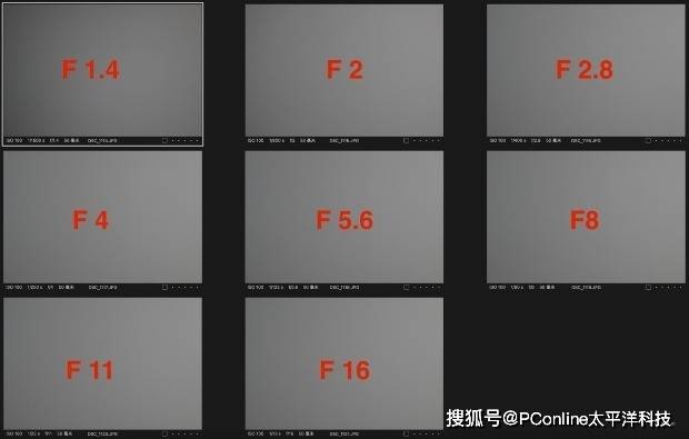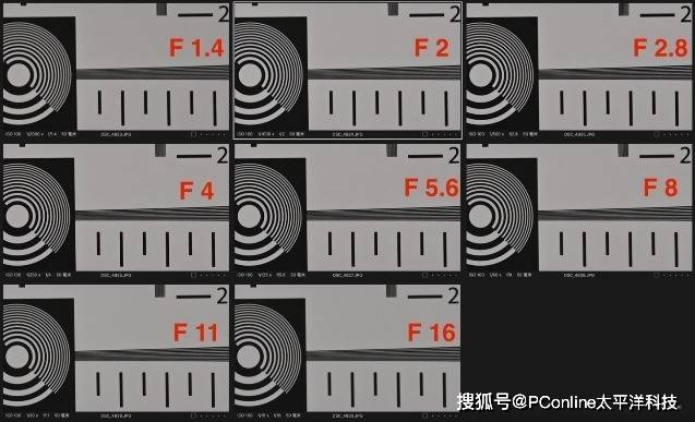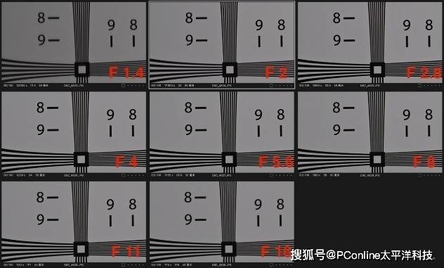 上为尼克尔 Z 50mm f/1.4和全画幅尼康Z6Ⅲ机身在各级光圈下对比测试图例