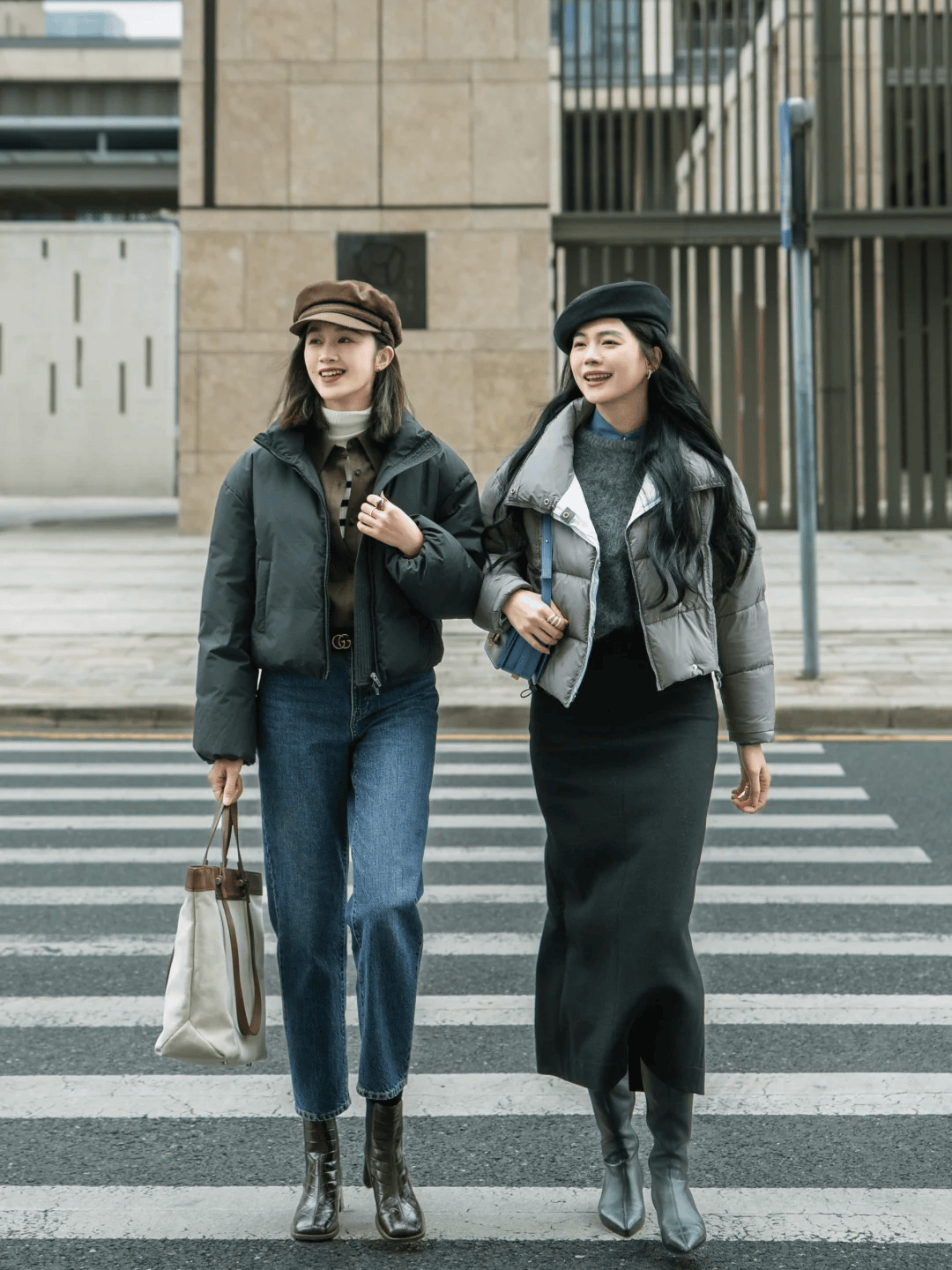 - 穿羽绒服时,裤子究竟该选“小脚”还是“阔腿”?看素人街拍就懂