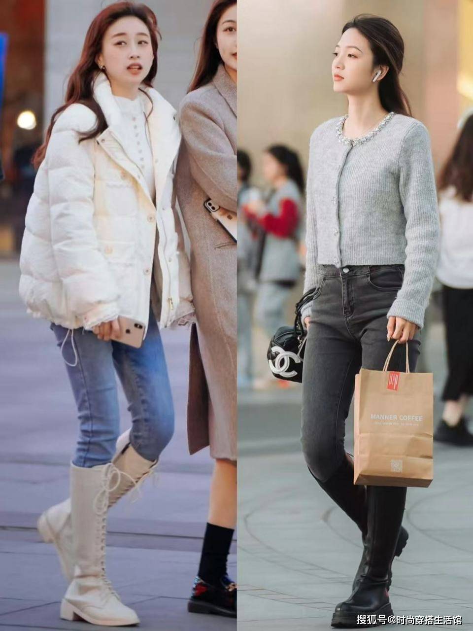 — 建议“牛仔裤”下面尽量不要搭运动鞋,瞧杭州人这样穿,洋气保暖 —