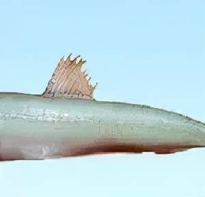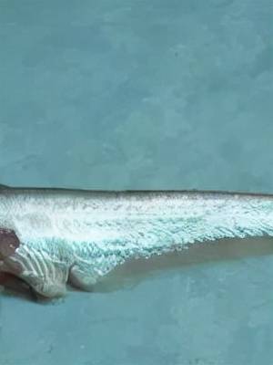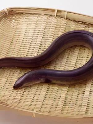 海鳗,经济鱼类;凶猛肉食性鱼类。硬骨鱼纲鳗形目、海鳗科、海鳗属。体呈长圆筒形,尾部侧扁。尾长大于头和躯干长度之和。头尖长。 眼椭圆形。口大, 舌附于口底。上颌牙强大锐利,3行; 犁骨中间具10~15个侧扁大牙。体无鳞,具侧线孔140~153个。背鳍和臀鳍与尾鳍相连。体黄褐色, 大型个体沿背鳍基部两侧各具1暗褐色条纹。脊椎骨142~154个。广泛分布于非洲东部、印度洋及西北太平洋。中国沿海均产,东海为主产区。
