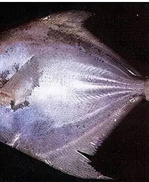 鲳鱼体短而高,极侧扁,略呈菱形。头较小,吻圆,口小,牙细。成鱼腹鳍消失。尾鳍分叉颇深,下叶较长。体银白色,上部微呈青灰色。以甲壳类等为食。