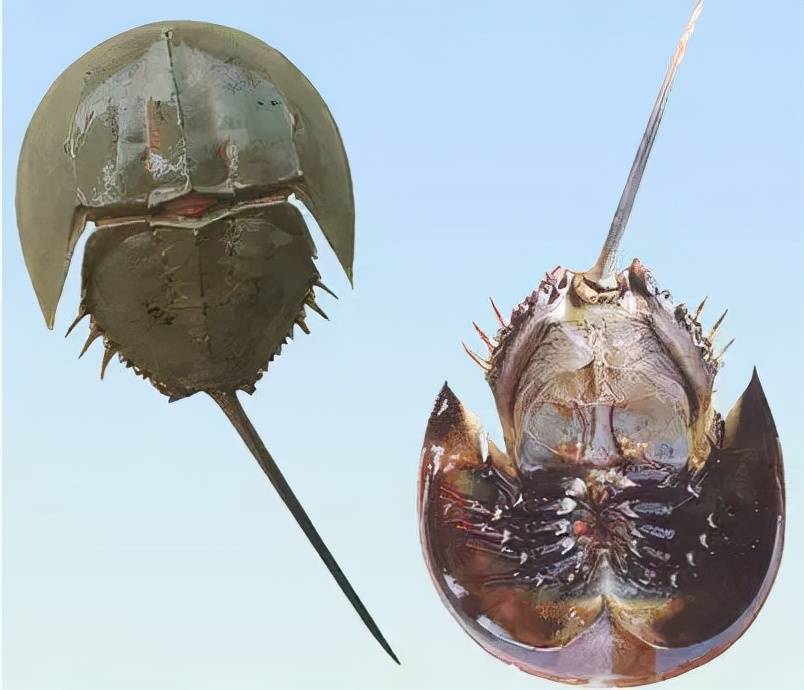 鲎亦称马蹄蟹。见于亚洲和北美东海岸。又称爬上灶、夫妻鱼、鸳鸯鱼,东方鲎等,马蹄蟹,海霸王,但不是蟹,而与蝎、蜘蛛以及已绝灭的三叶虫有亲缘关系。