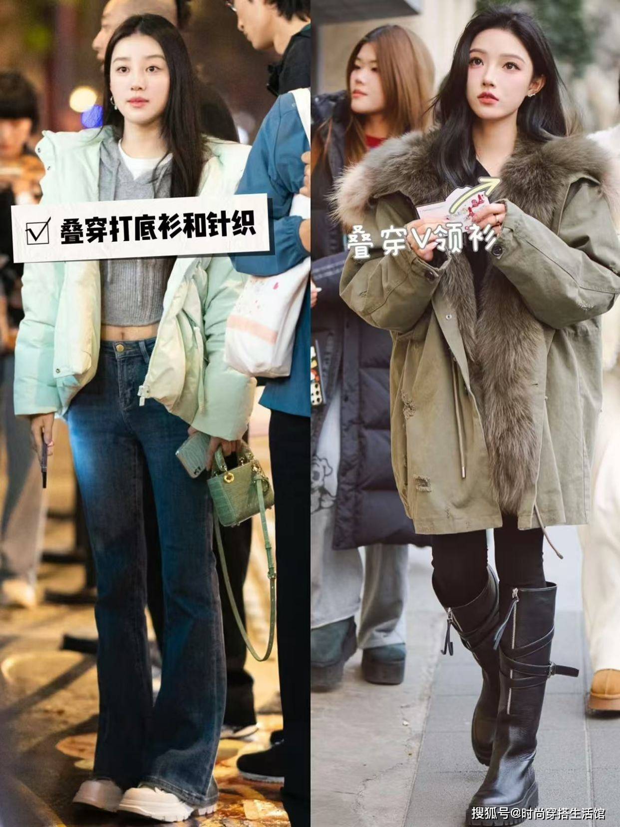 — 降温后羽绒服下面尽量不要搭阔腿裤,瞧上海人这样穿,好看又保暖 —