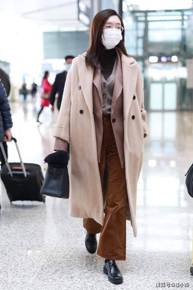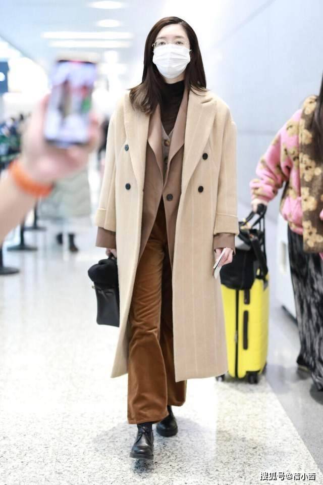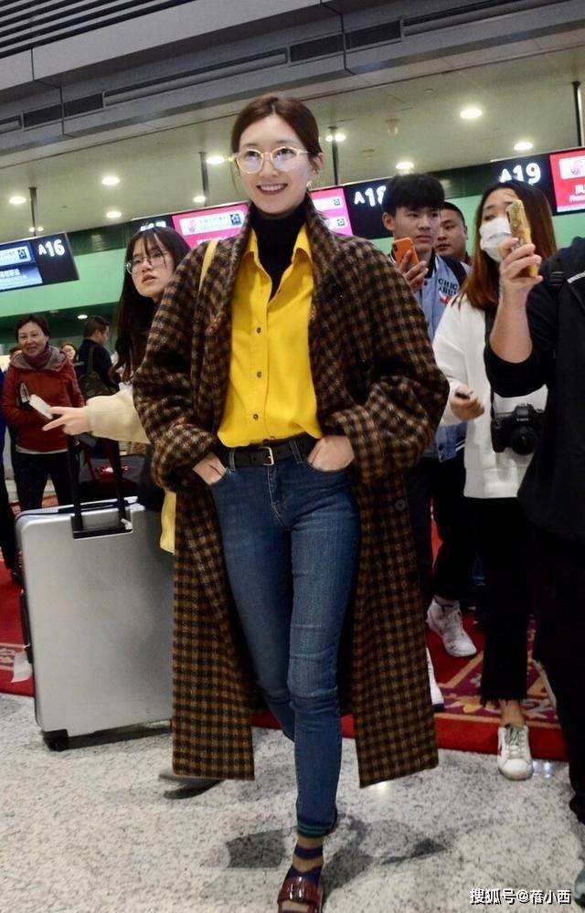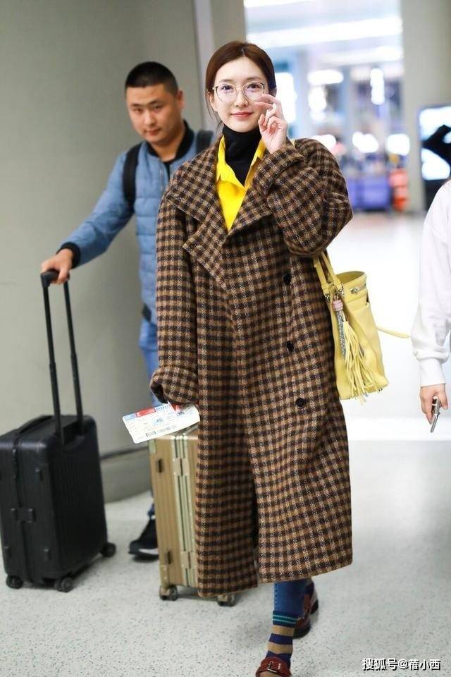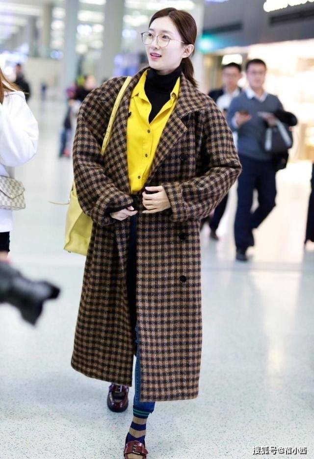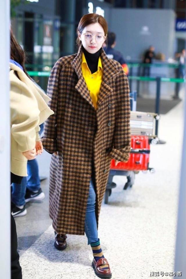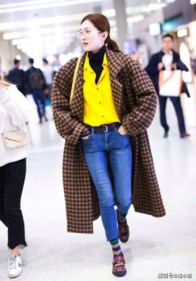 — 江疏影会穿是数一数二的,格纹大衣+衬衫+牛仔裤走机场,时髦洋气 —
