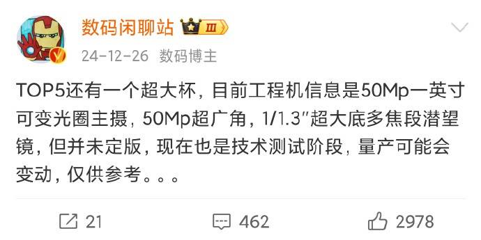 — 华为Pura 80 Ultra将搭载1/1.3"超大底潜望,有望争夺今年的影像之王! —