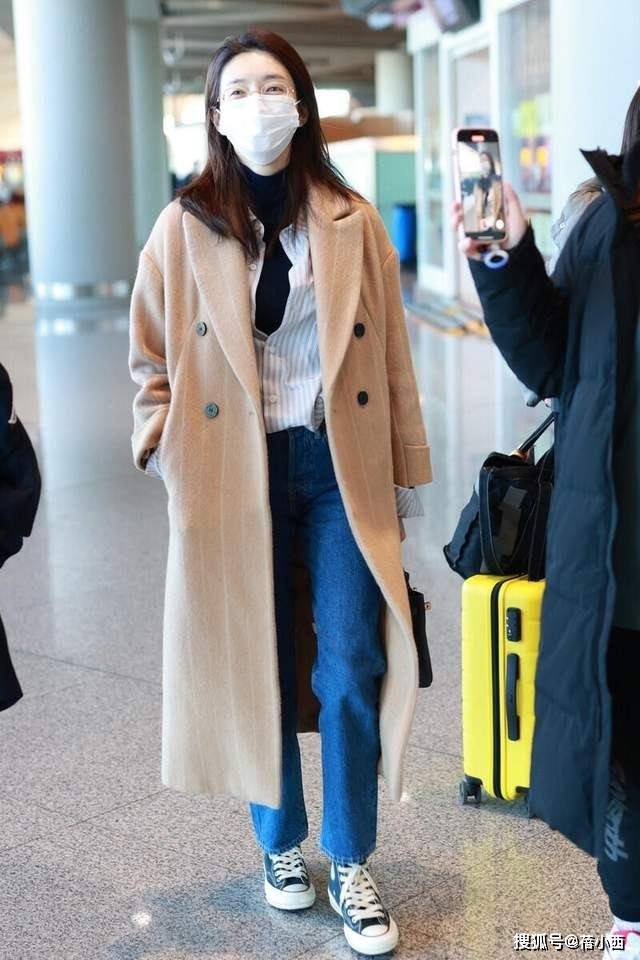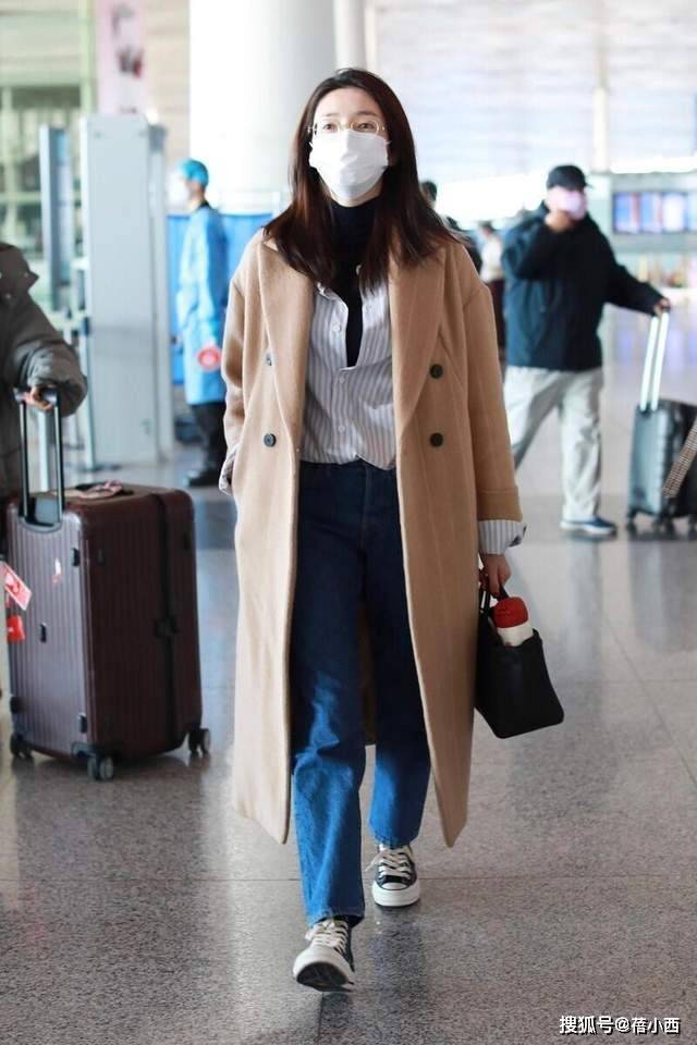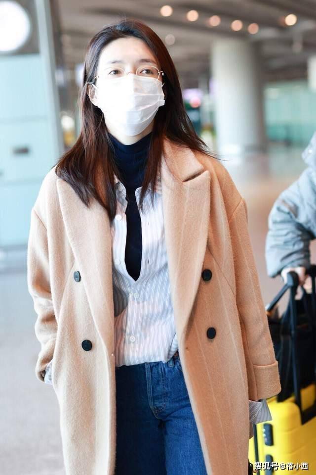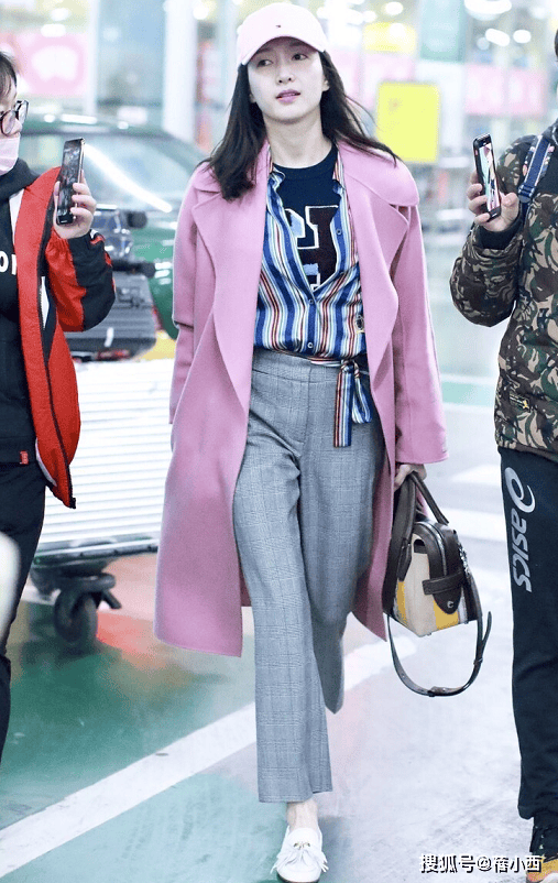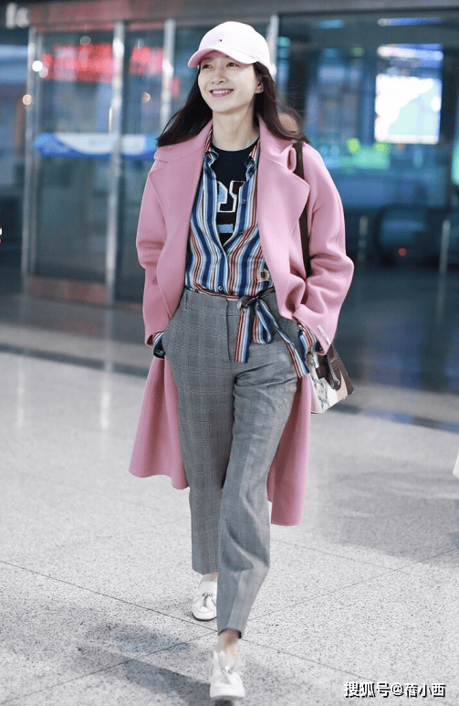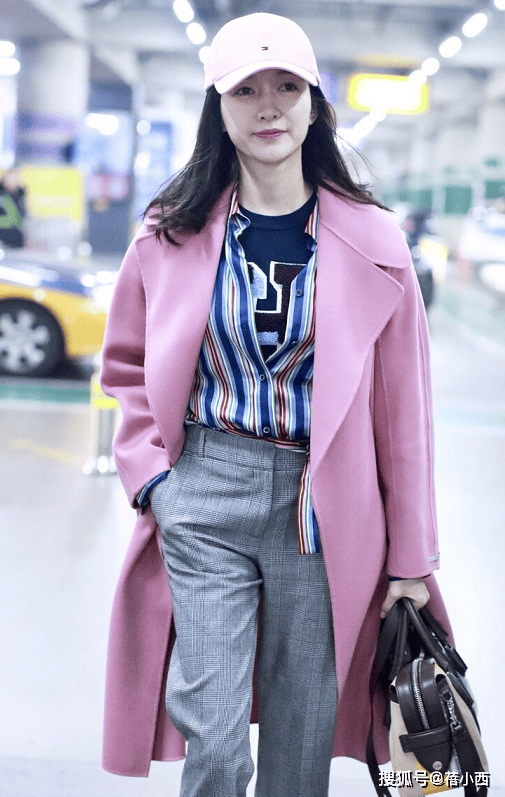 — 江疏影会穿是数一数二的,粉色大衣+条纹衬衫时尚洋气,气质惊艳 —