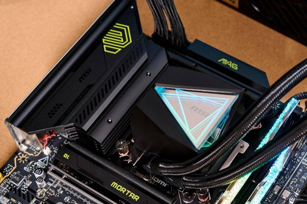 例如我们使用的是微星最新推出的MAG CORELIQUID I系列水冷,它专门为全新酷睿Ultra 200S系列处理器开发了LGA 1851专用的偏移扣具,解决了LGA 1851处理器发热源偏移的问题,据说在超频时能够将散热效率提高约3%,满足极客玩家的极致性能需求。