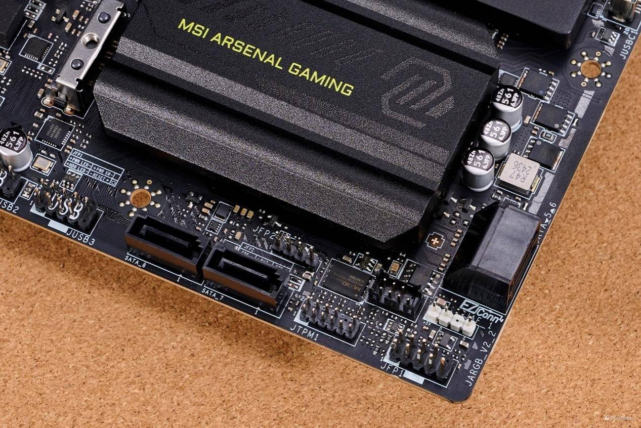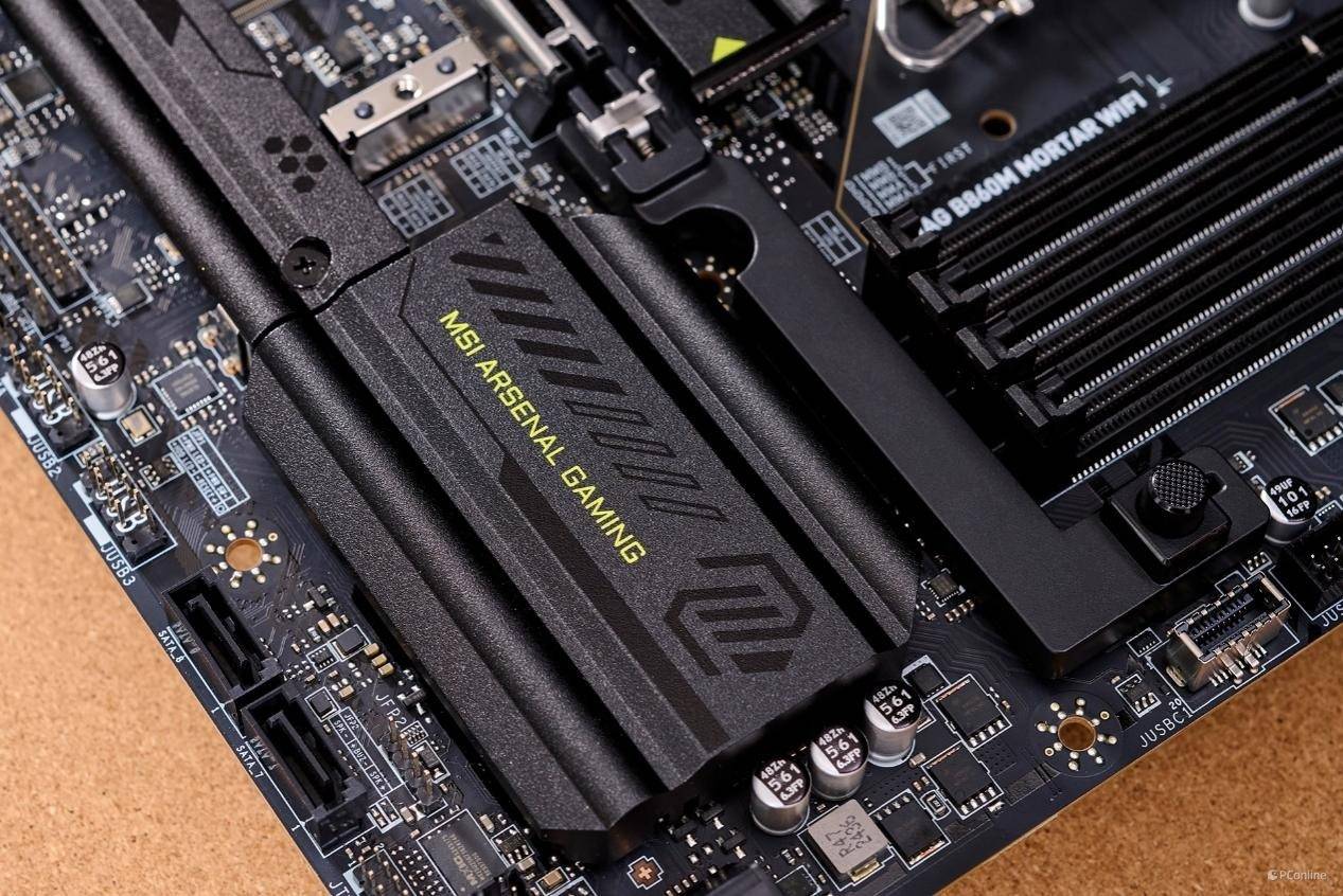 M.2接口不够?别担心,微星B860M迫击炮主板还提供了4个SATA 3.0接口,位置在PCH南桥的周围,最高支持SATA 6Gb/s速率,并且支持组RAID磁盘阵列。