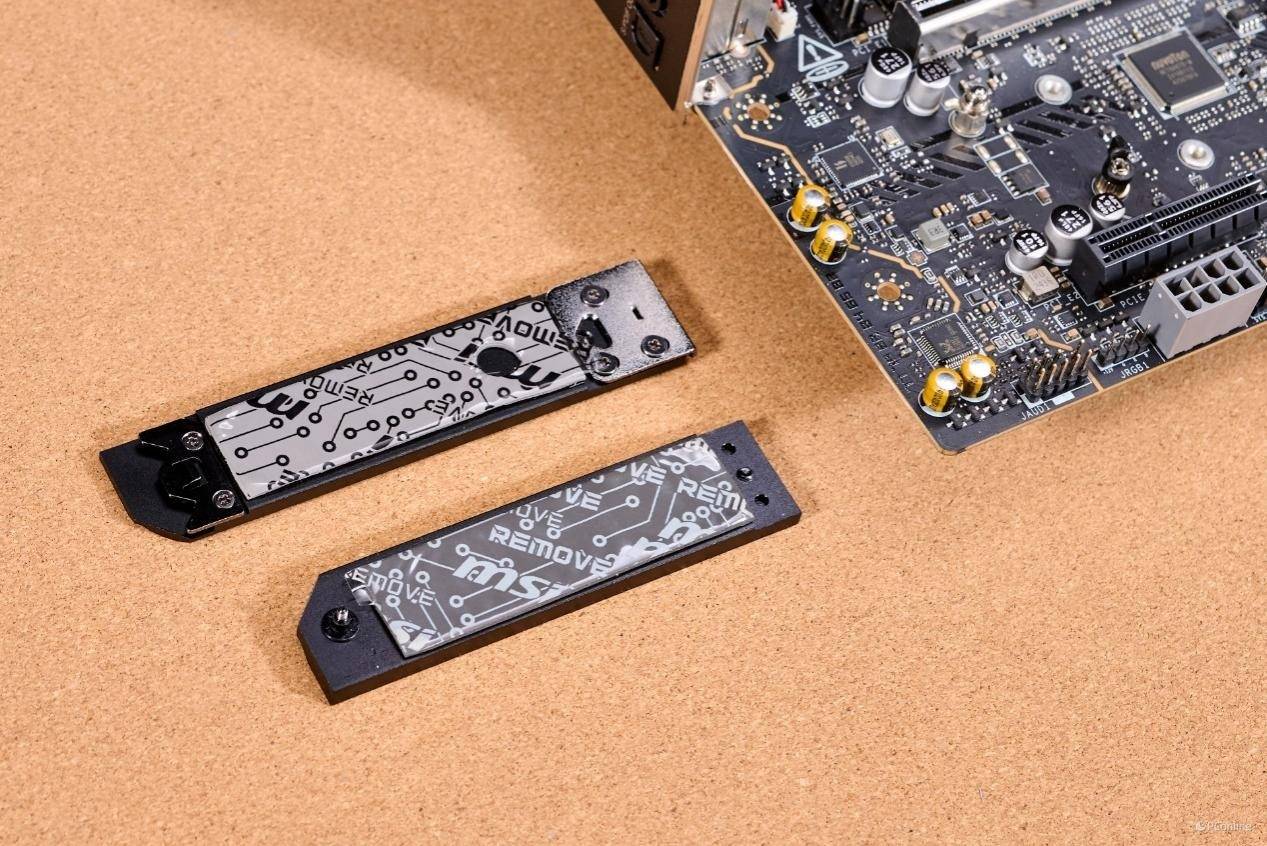 除此之外,微星还在M.2的散热马甲上进行了EZ人性化设计,例如第一个槽位的散热马甲可以靠左侧的按钮轻松取下,硬盘的固定卡扣则能够无螺丝轻松安装。