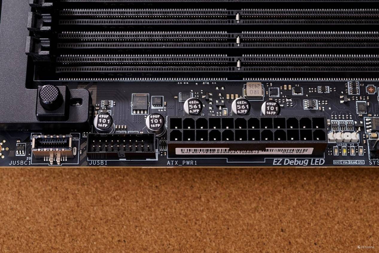 另外,随着RTX 50系显卡的即将到来,届时显卡的功耗势必上涨,因此微星也在主板底部加装了一个单8Pin的供电接口,其主要目的就是为未来的显卡而准备。