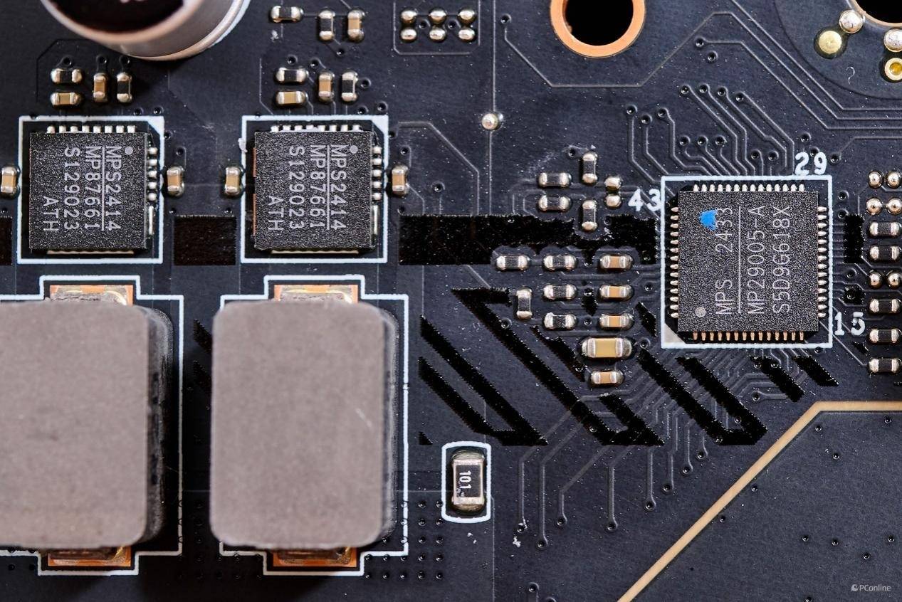 主控芯片采用的是多相PWM控制器,也来自MPS,型号是MP29005-A,这颗PWM主控并无相关信息,不过笔者根据其编号为“29”开头,猜测应该为3通道PWM主控,并且这颗主板不少Z890主板也在用,品质绝对有保障。