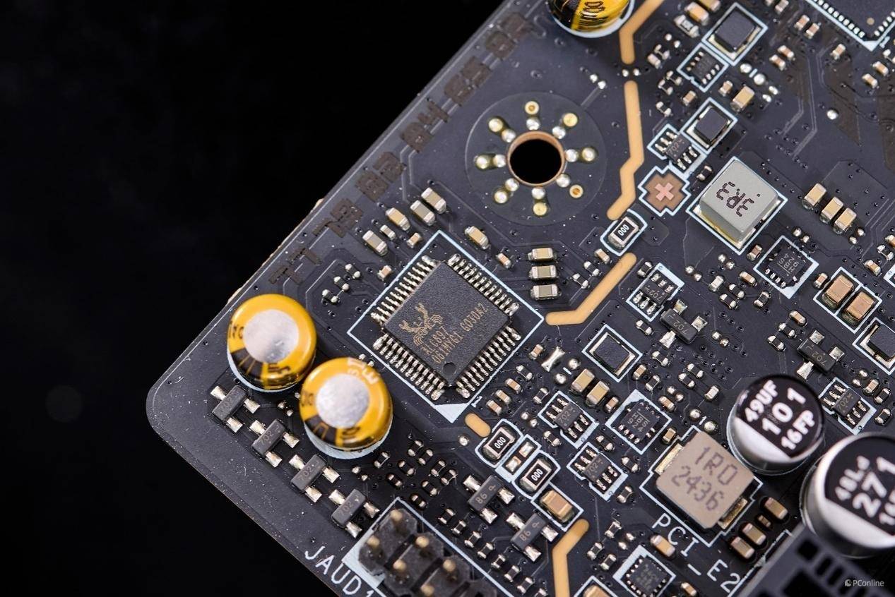 接着我们再看声卡等硬件的配置,微星B860M迫击炮主板标配的是ALC897高保真解码芯片,支持5.1声道,旁边还搭配了两颗电容,能够提升音频解析能力。