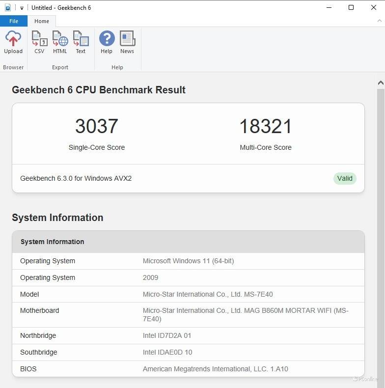 我们再看看一款熟悉的软件——GeekBench,大家在手机评测中应该经常见到,不过它也可以用于衡量桌面端处理器的单核/多核性能。我们用最新版本实测酷睿Ultra 5-245K的单核为3037,多核为18321,性能表现不错。